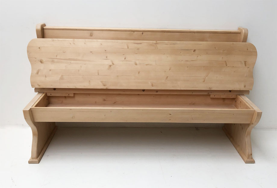 Einzelbank Lindau mit 1 Truhe, Höhe Wangen 88,5 cm, Ablage 87 cm, Länge 170 cm, starker Sitz und starke Wangen 4 cm , Aussenwangen glatt,