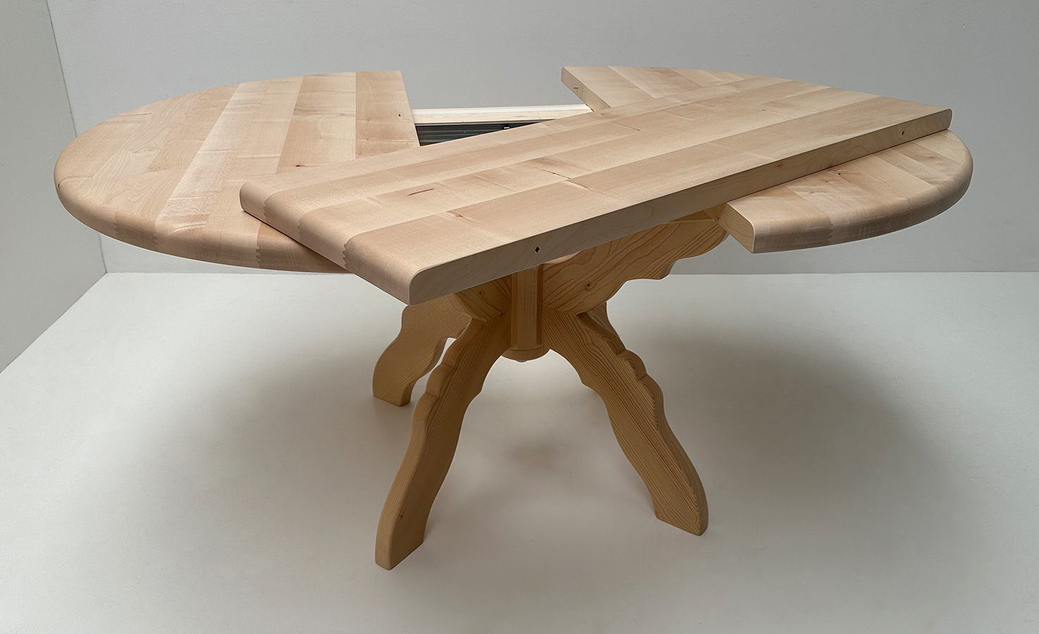 Kreuzfußtisch Kreuzzargentisch Rundtisch Lindau, Ahornplatte D120 cm, Einlegeplatte 40 cm