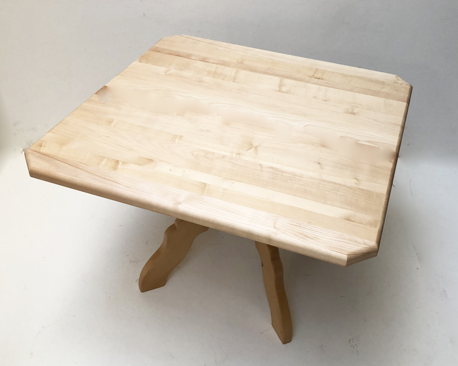 Kreuzfußtisch Kreuzzargentisch 110/110 cm, Ahornplatte , Ecken abgeschrägt