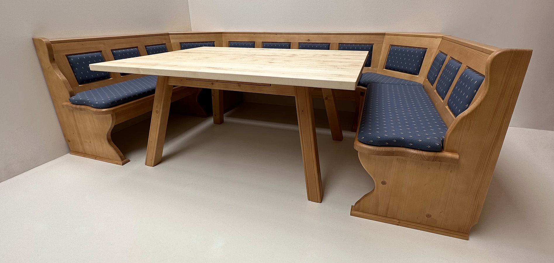 Gerne fertigen wir Ihnen diese Eckbank auch im Wunschmaß auf Anfrage an