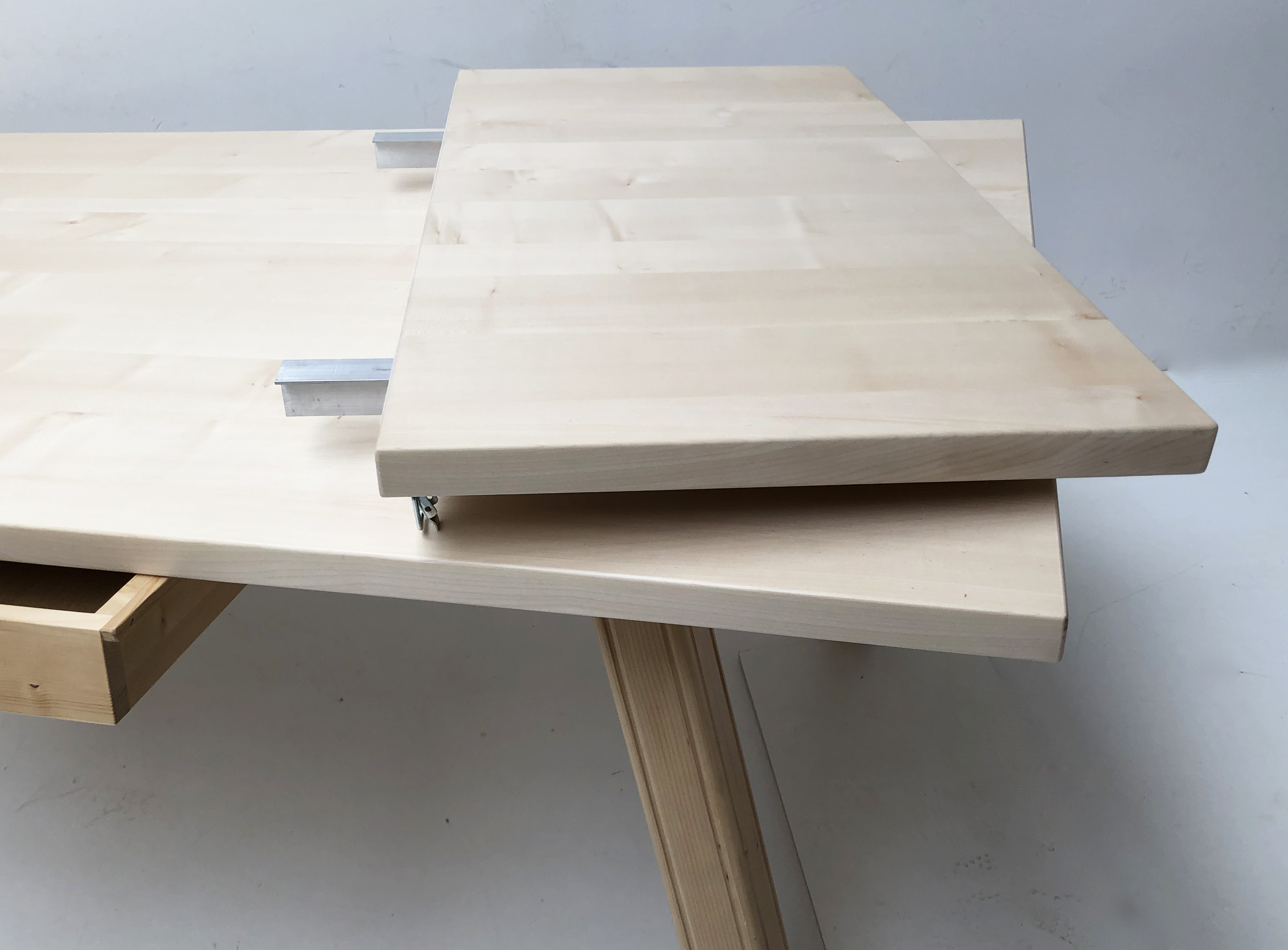 Vierfußtisch 4510, gerader Fuß, 110/185 cm, Ansteckplatte 40 cm , Ahornplatte, Profil R5