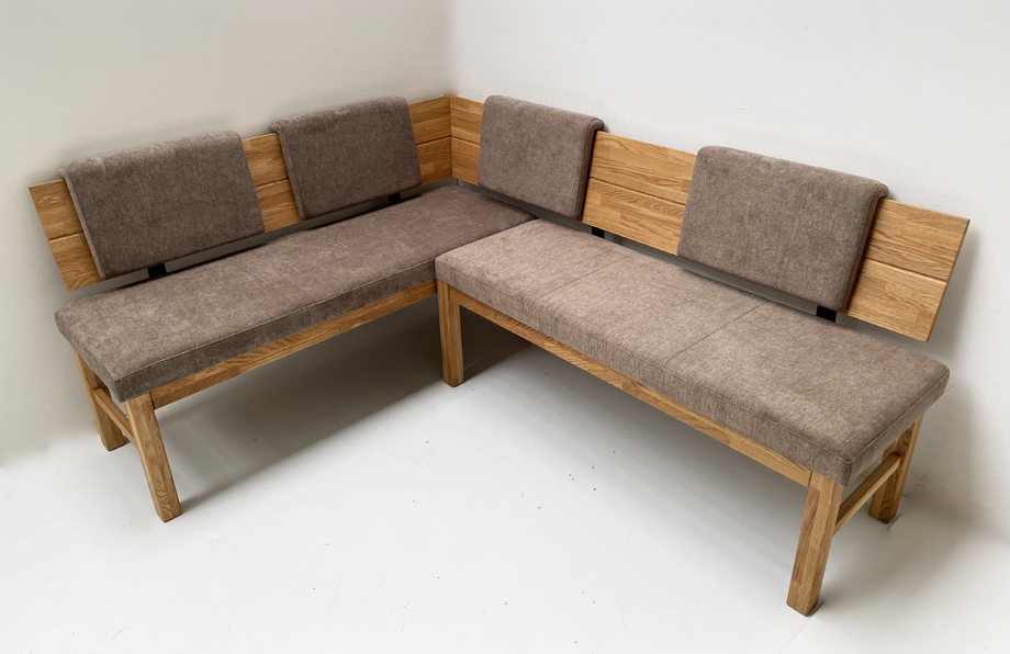 Eckbank Baumbank Oviedo Sondermaß !! 140/200 cm Wildeiche massiv, Polster genäht, Natura 804 braun
