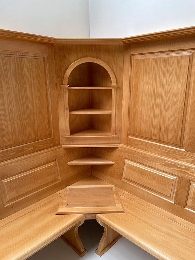 Offenes Eckkapitel geschwungen, 2 Böden gleich 3 Fächer !