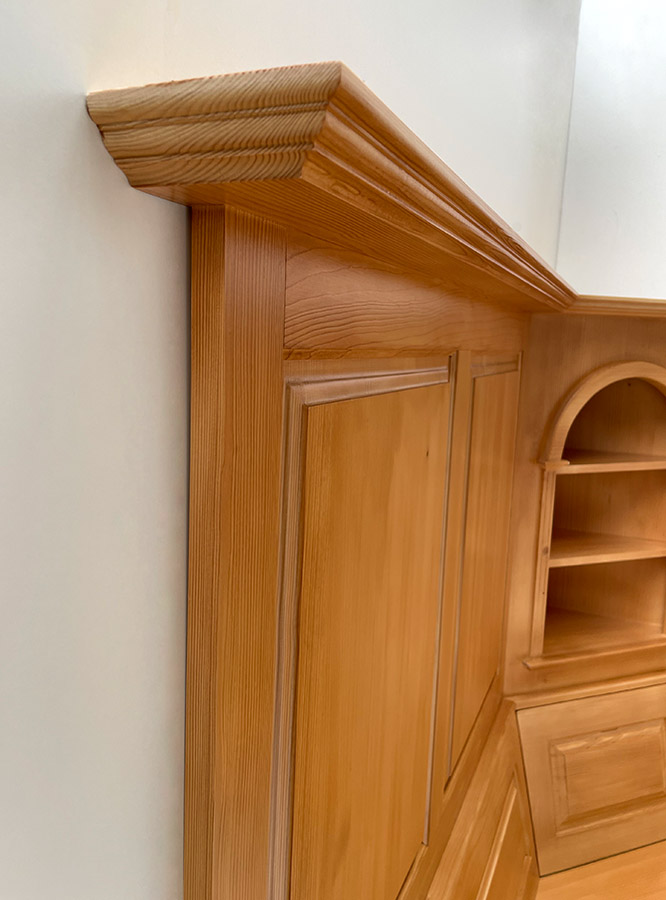 1 Wandverkleidung Höhe 100 cm, Bord oben in Tiefe 14 cm ! 2 Kasetten im Rücken und in der Wandverkleidung