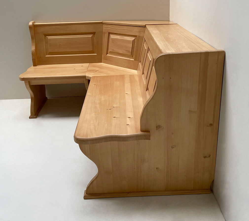 Eckbank Lindau 185/185, Ablagen- und Wangenverbreiterung Schenkel 185 cm links um 30 m, ohne Truhen