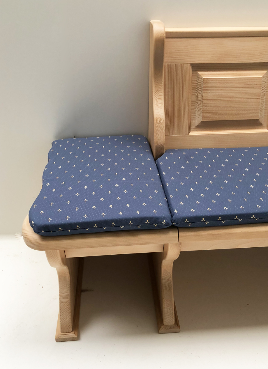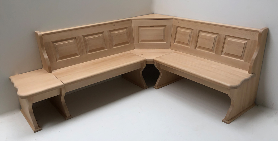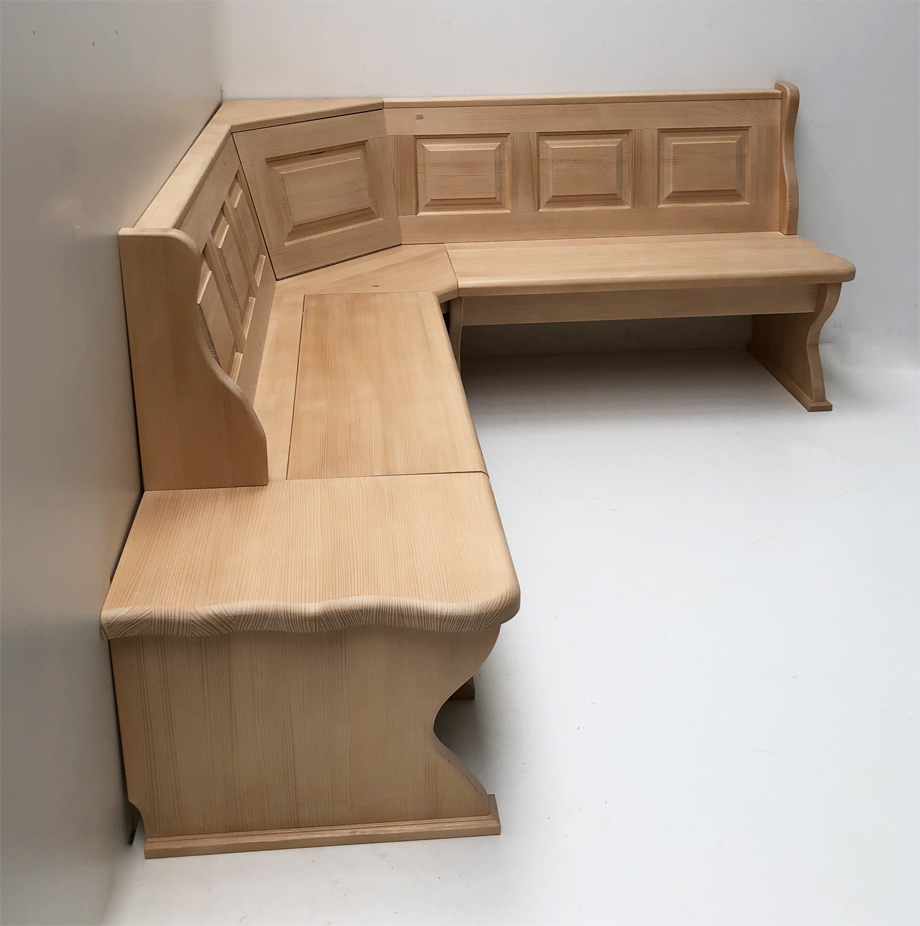 1 Eckbank Lindau mit Truhen, gerade Kasetten, Wangenmaß links 177 cm, Sitz und Wangenstärke 4 cm gerade Holzkasetten