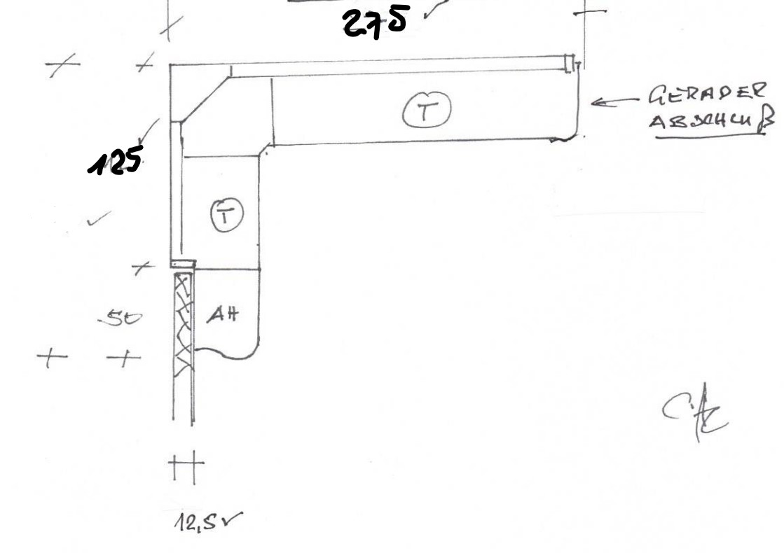 ohne Lehne gm. Skizze, fest angebaut (ist kürzer als Bank wegen anschliessendem Heizkörper, siehe Skizze)