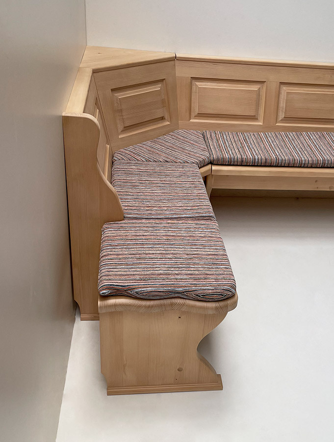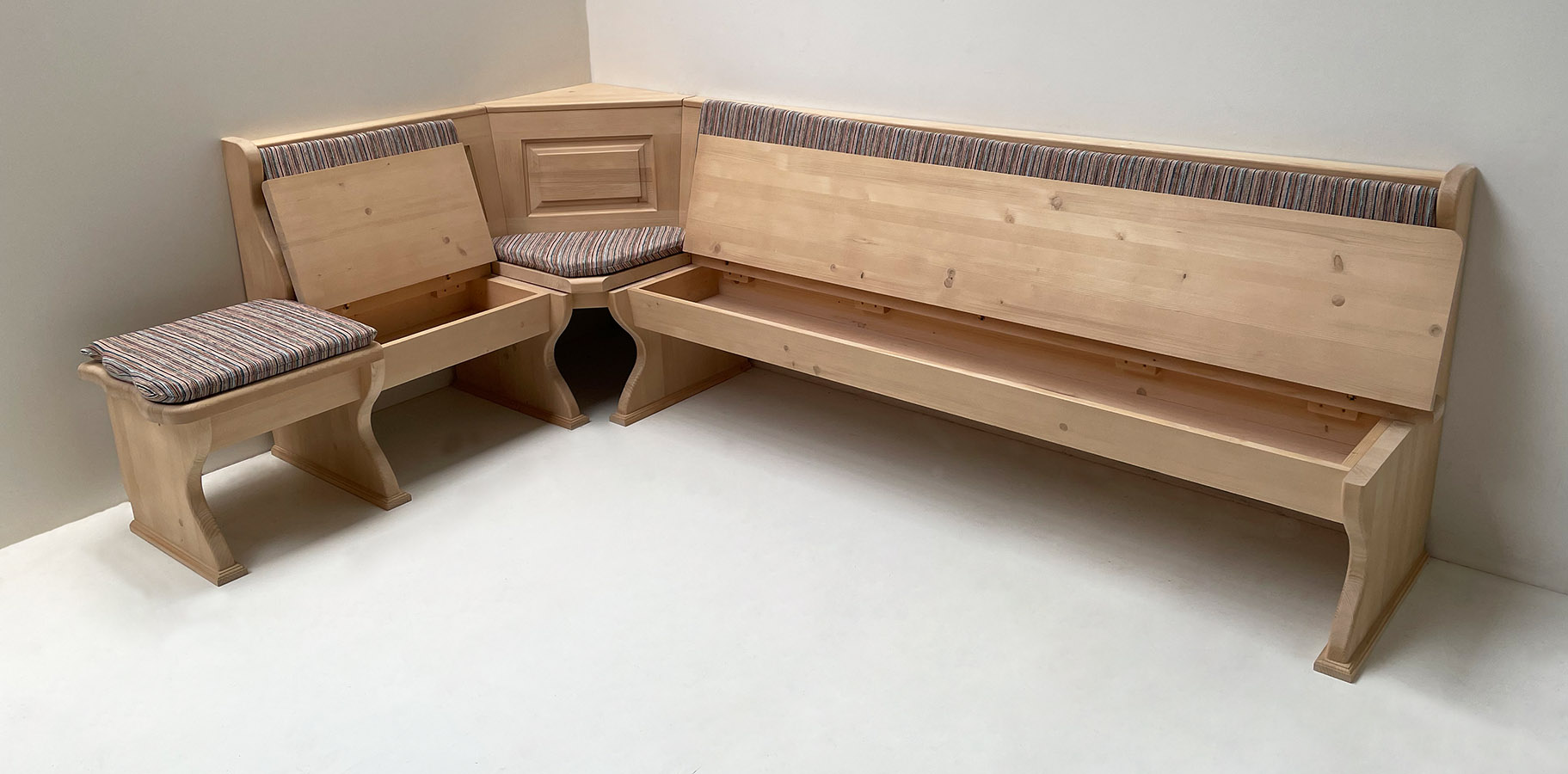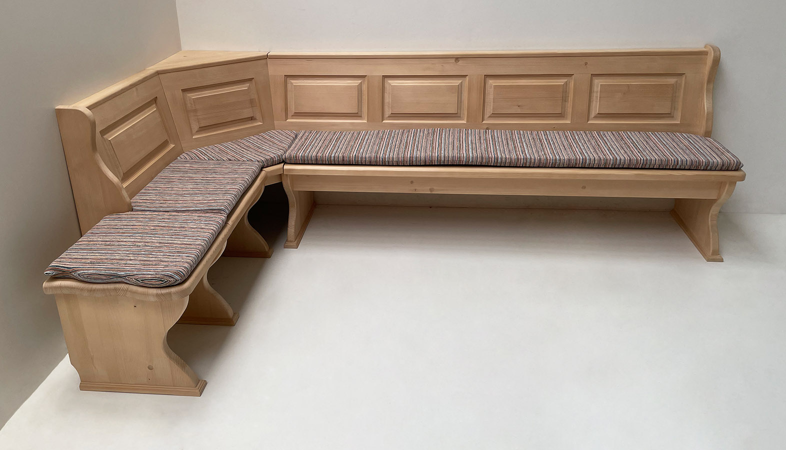 1 Eckbank Lindau Schenkelmaß 175/275 cm, Wangenmaß links 125 cm, mit Anbauhocker 50 cm