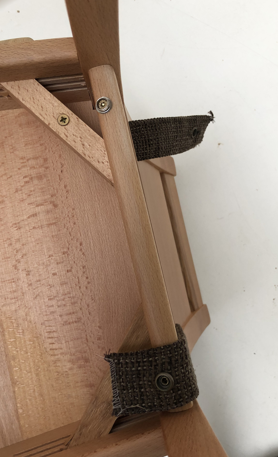 mit Stuhlkissen lose genäht mit Reissverschluß zum Abziehen, Laschen zum Fixieren mit Wendedruckknöpfen, Gegen Verrutschen mit Antirutschunterlage !