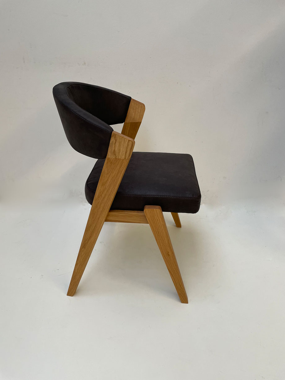 Sitz und Lehne gepolstert, Gestell aus Wildeiche geölt