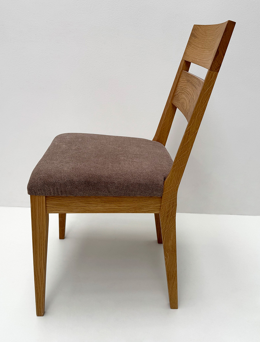 Stuhl Mod. Filippa, Sitz Vollpolster und Lehne Massivholz , Abm: , Höhe 89 cm, Sitzhöhe 45, Breite 46 cm, Tiefe 54 cm, Holz: Wildeiche, Oberfläche: geölt, Festpolster