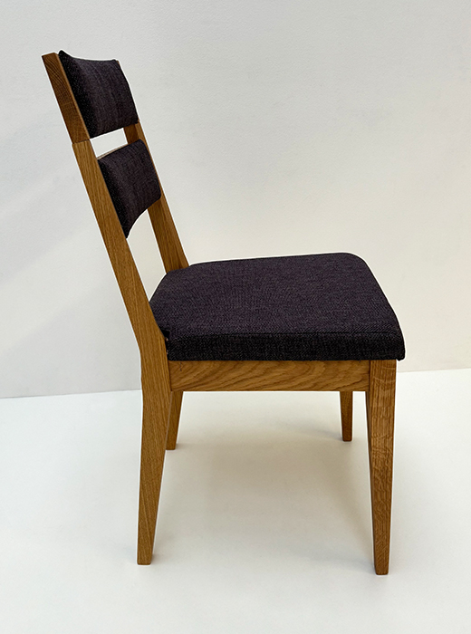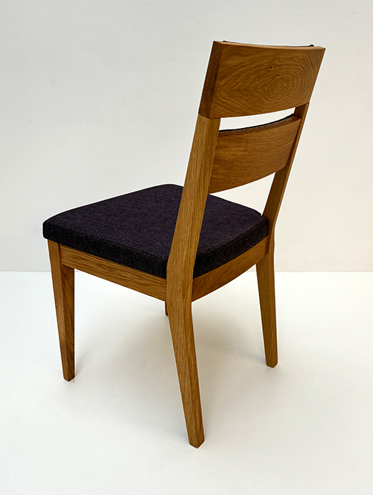 Stuhl Mod. Filippa, Sitz Vollpolster und Lehne Massivholz , Abm: , Höhe 89 cm, Sitzhöhe 45, Breite 46 cm, Tiefe 54 cm, Holz: Wildeiche, Oberfläche: geölt, Festpolster