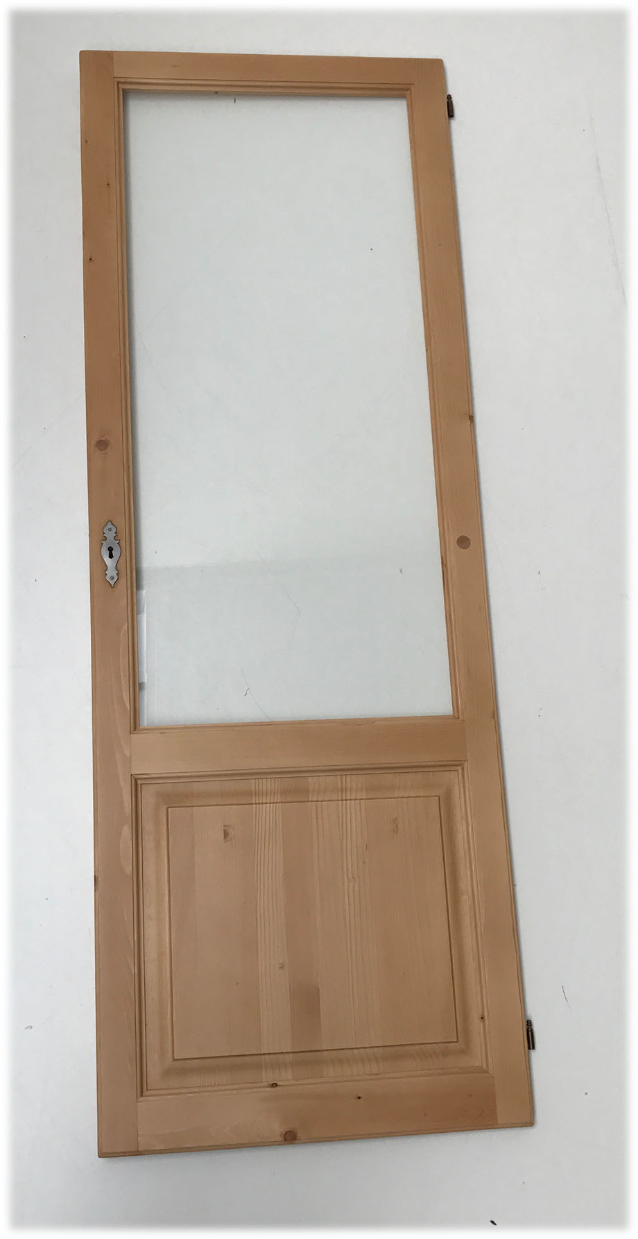 Möbeltüre mit Glas und Kasette, rechts mit Schloß, Fitchenbänder, Fichte massiv, Oberfläche Rosner gewachst