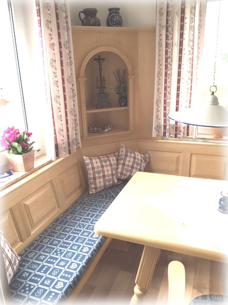 1 Eckbankgruppe Lindau in massiver Fichte Farbton Rosner gebeizt und lackiert