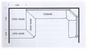 Ofenbänke, Ofenbank im Sondermaßabwicklung nach lfm, Aufmaßblatt Ofenbank