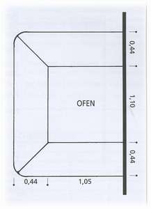 Ofenbänke, Ofenbank umlaufend, Sondermaß nach lfm, Aufmaßblatt Ofenbank