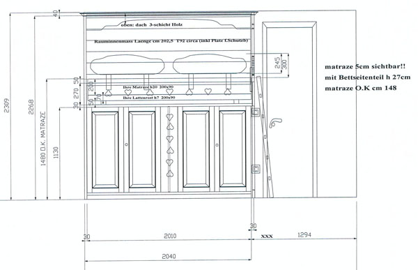 Vorschlag für eine Schlafcoje nach Kundenwunsch, Com: Pfungen, Schweiz , Einrichtungsvorschlag für Landhaus Schlafzimmereinchtung Alle Sonderanfertigungen und Farbtöne möglich ! Fichte massiv, gewachst , Wachseffekt, lackiert oder Sonderton möglich !