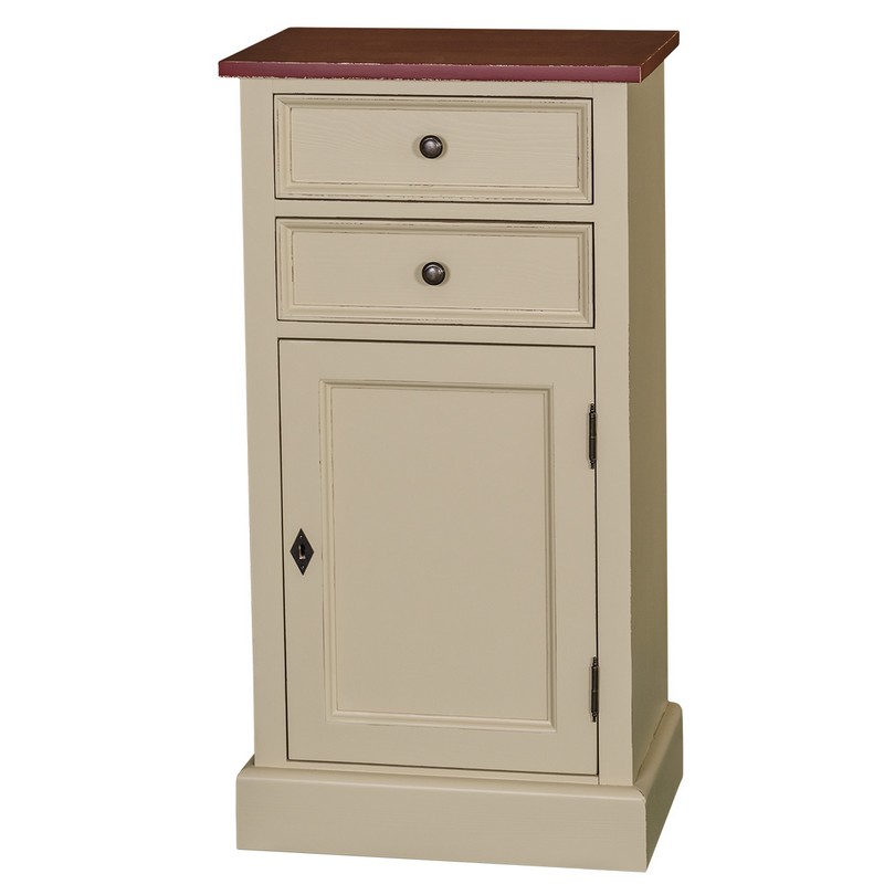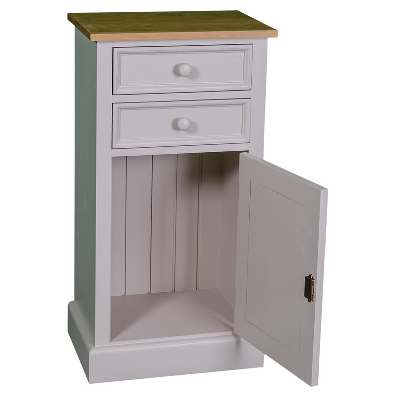 Nachtkästchen Kommode Konsole, 2 Schubladen, 1 Tür, Kiefer massiv, zweifarbig lackiert