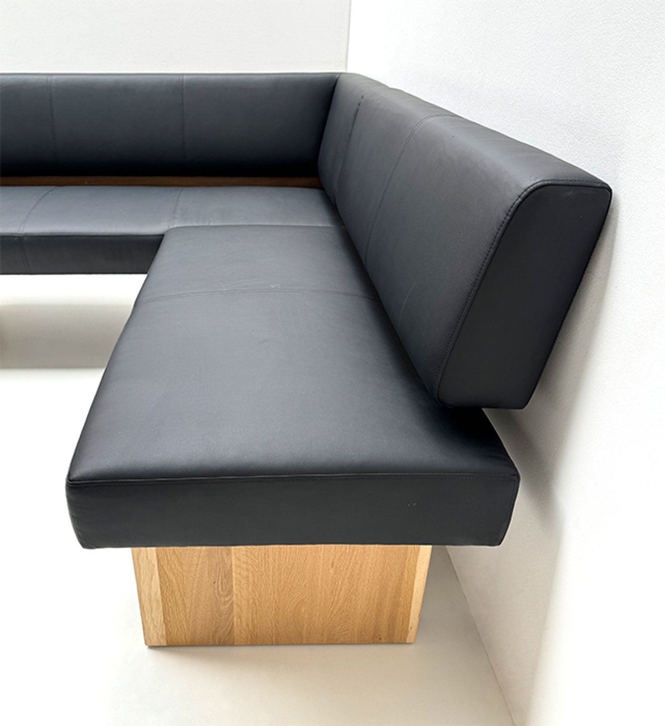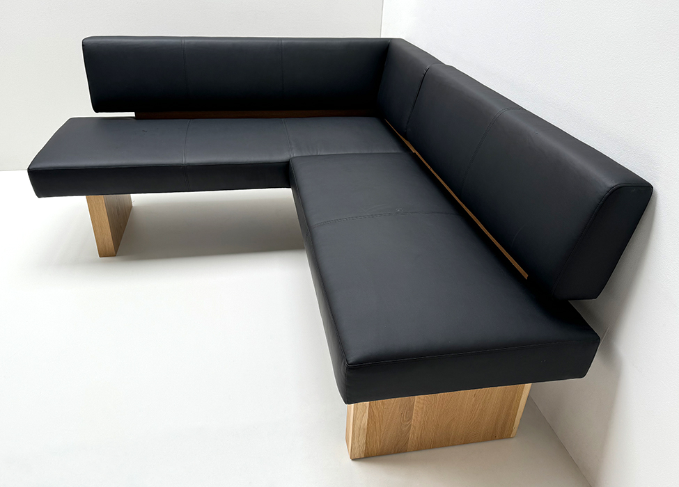Eckbank SUMMER Massivholzeckbank, Polstersitz, 165/185 cm, Wildeiche, Kunstleder Schwarz 7006