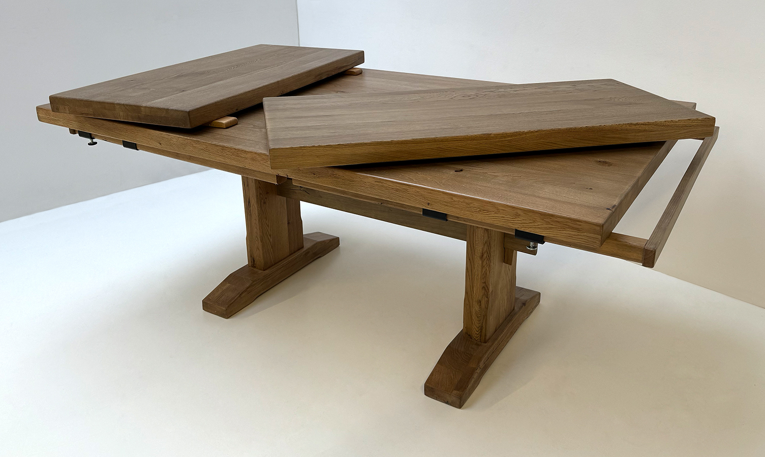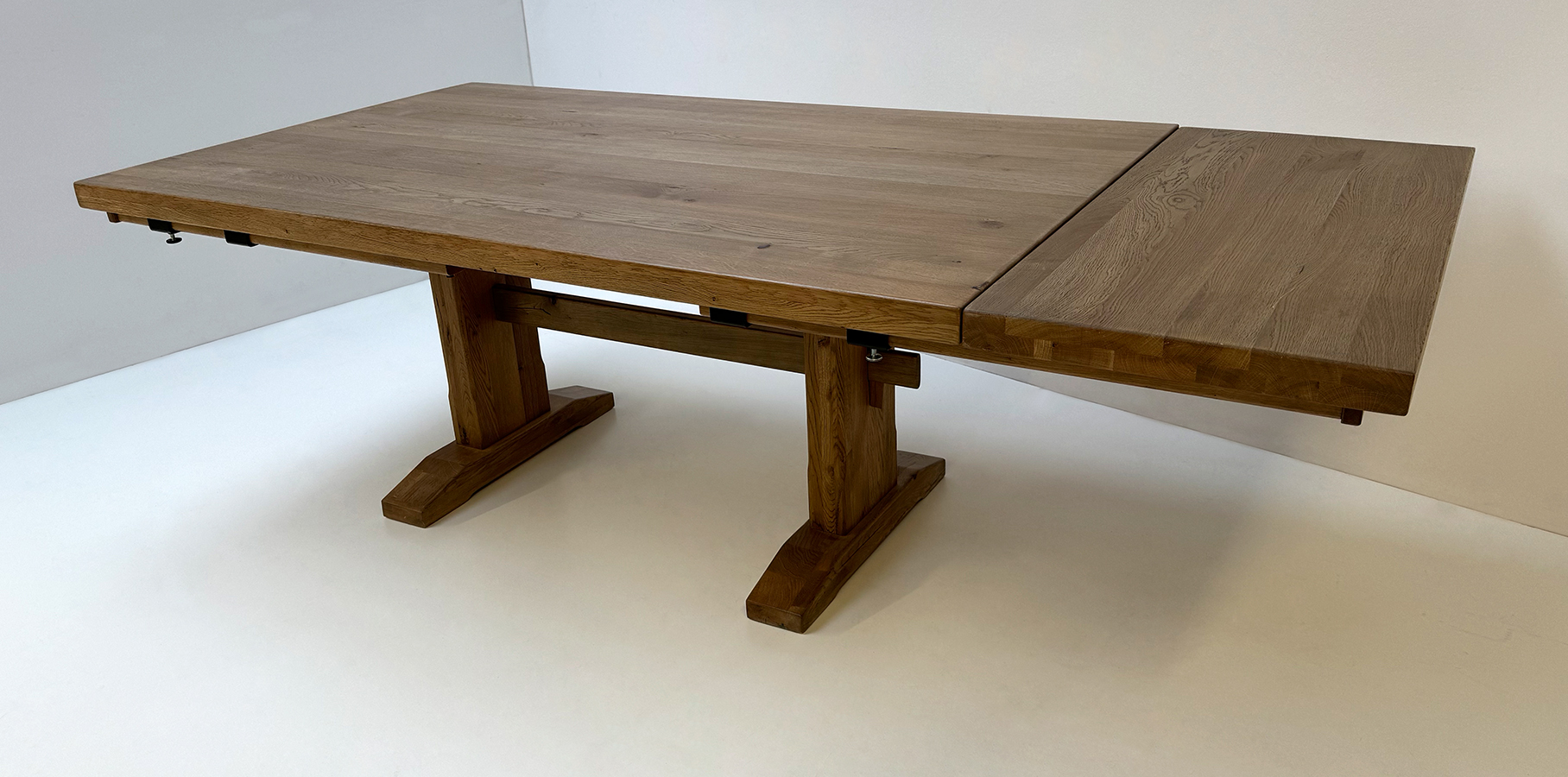 Esstisch Massivholztisch LITTLE ROCK, 180/110 cm, 2 Ansteckplatten 50 cm, Wildeiche lackiert