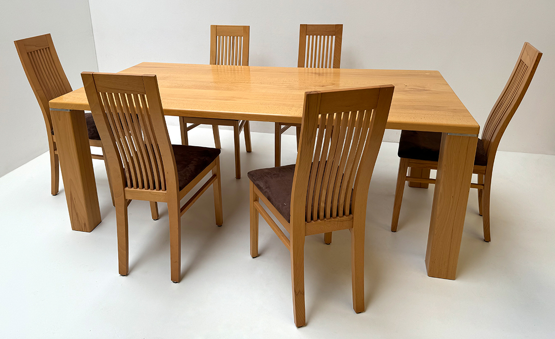 Sitzgruppe Nürnberg Buche, Tisch 100/200 cm, 2 Ansteckplatten 50 cm, 8 Stühle Schösswender Mod. 32
