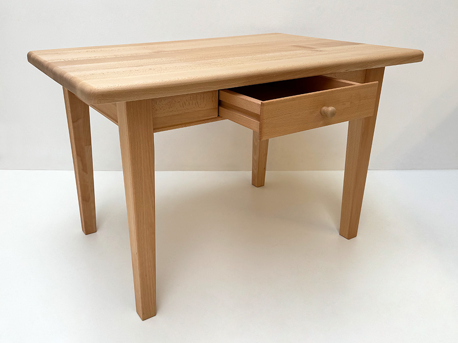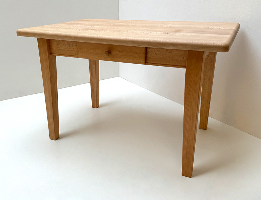 Abm. 120/80/75 cm mit Schubladen, quer ausziehbar, Platte Buche massiv, 38 mm stark, Buche massiv geölt
