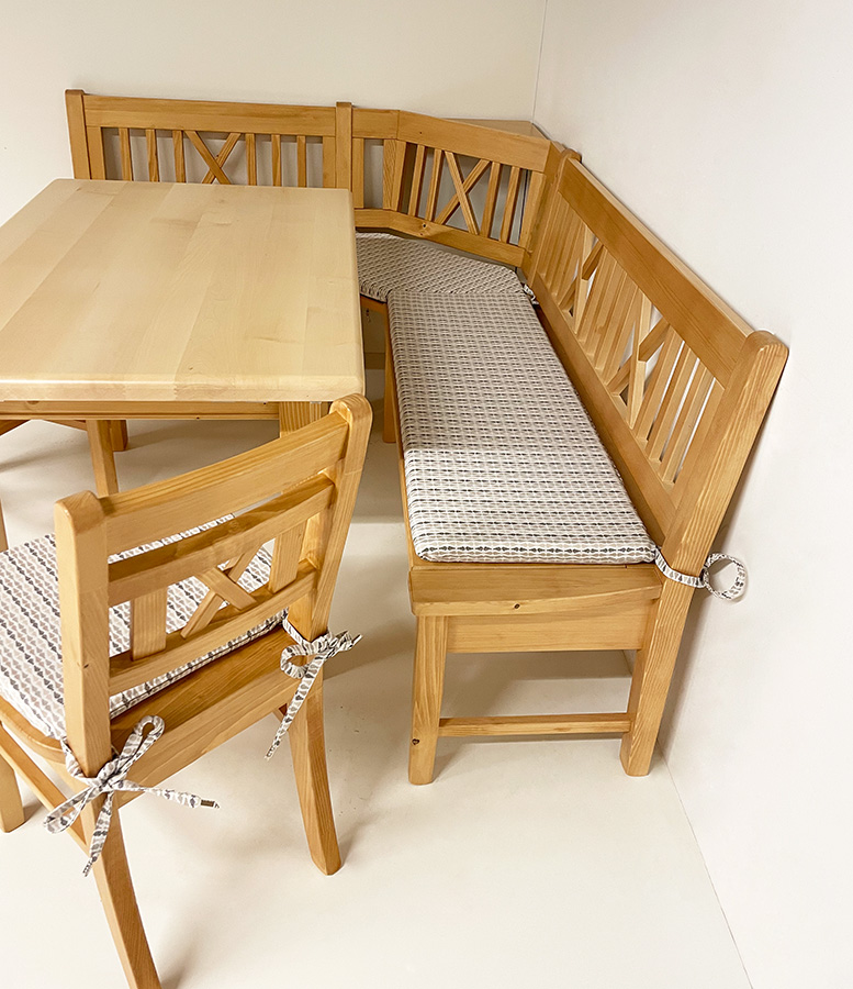 Eckbank Nürnberg 150/190 cm mit Sprossen, Fichte Rosner lackiert, Polstersatz genäht, Venice 101