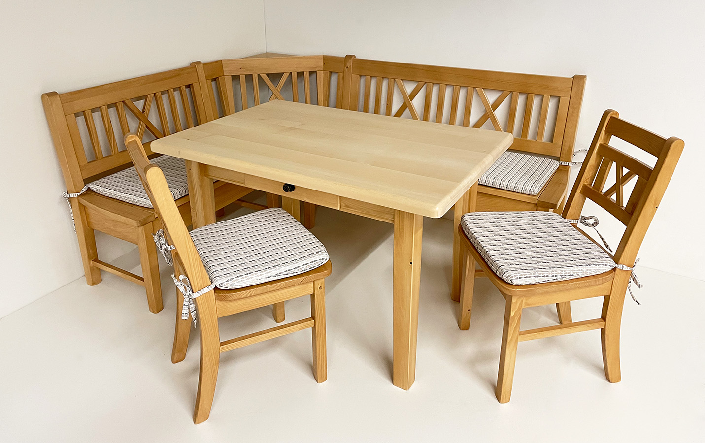 1 Eckbankgruppe Nürnberg, Fichte massiv, Rosner gebeizt und lackiert bestehend aus: