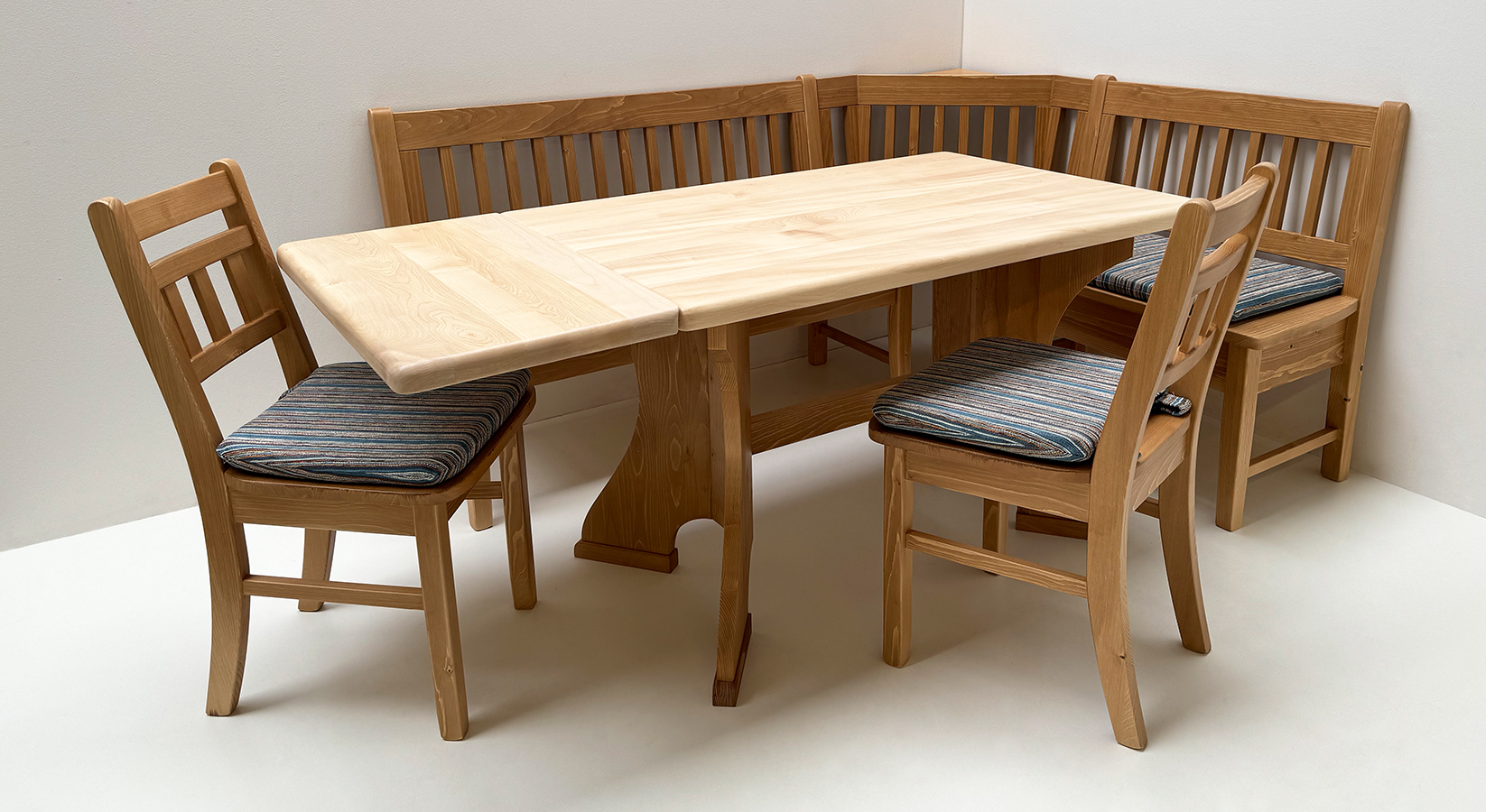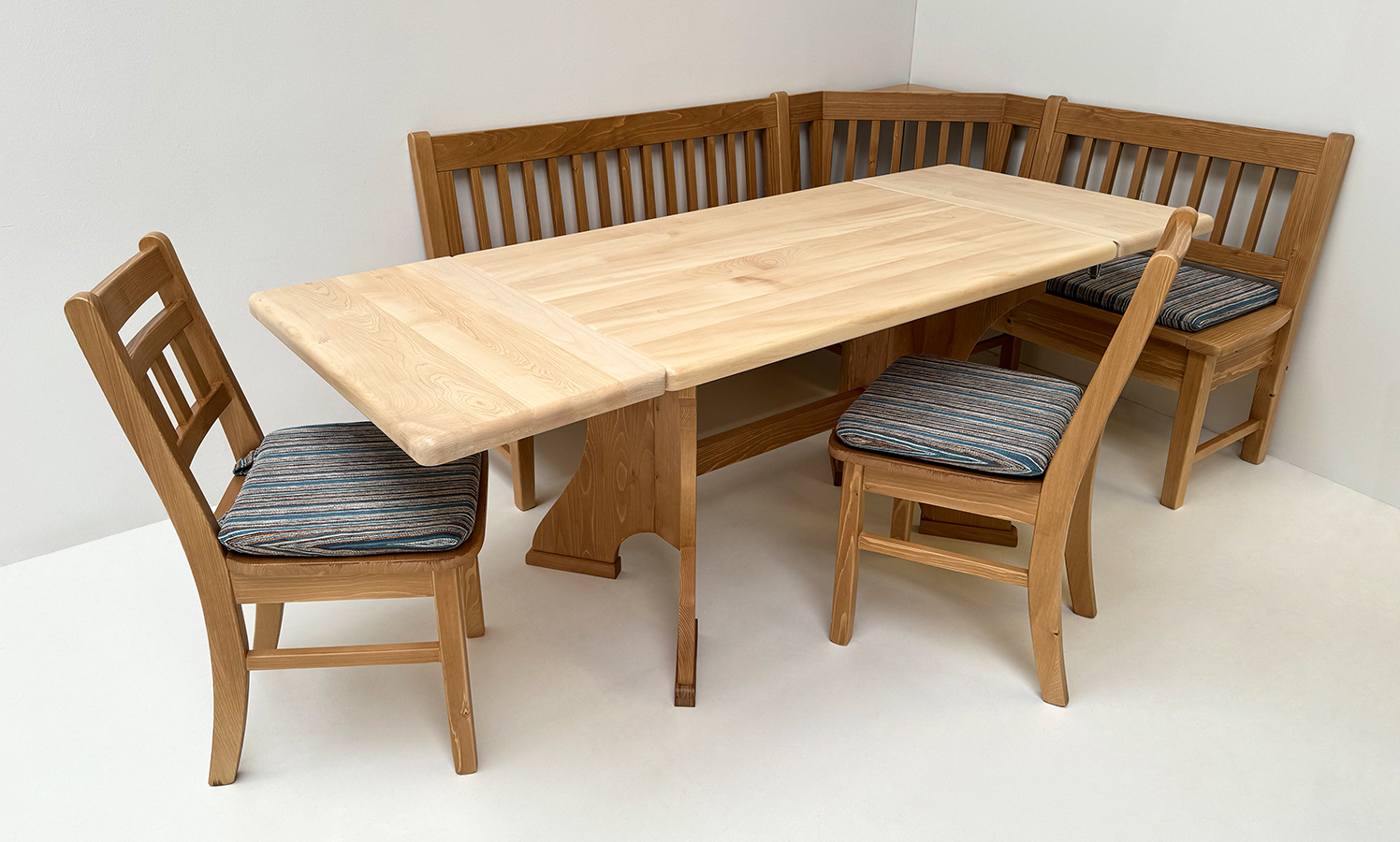 Eckbankgruppe Nürnberg, 190/150 cm, Ahornpatte 120/80 cm, 2 Ansteckplatten, 2 Stühle, TS-3033