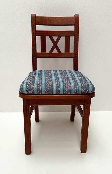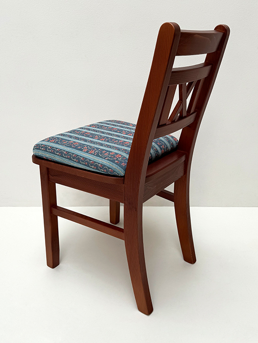 Sprossenstuhl Nürnberg mit Kreuz, Fichte massiv, Sonderton Torf 09, Polsterplatte Waidhaus blau