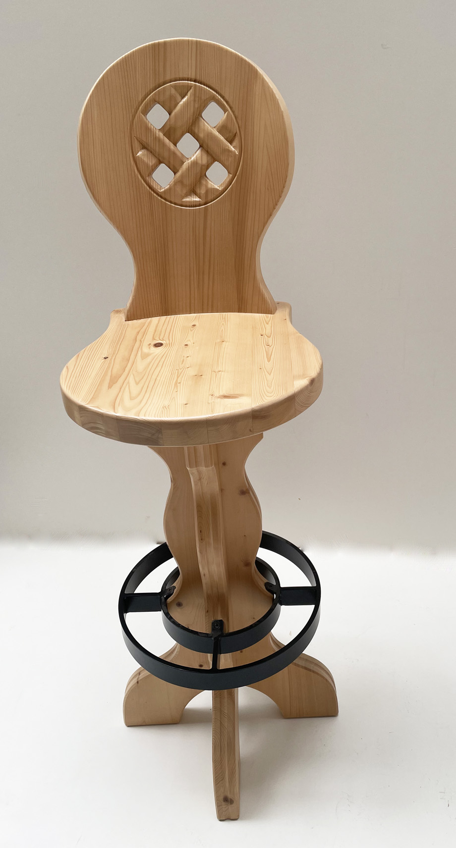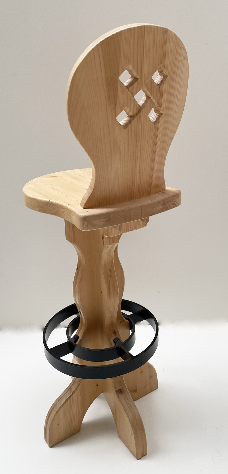 Barhocker, Bauernstuhl WL- 8864 mit gekehlter Lehne, geschnitzter Rücken