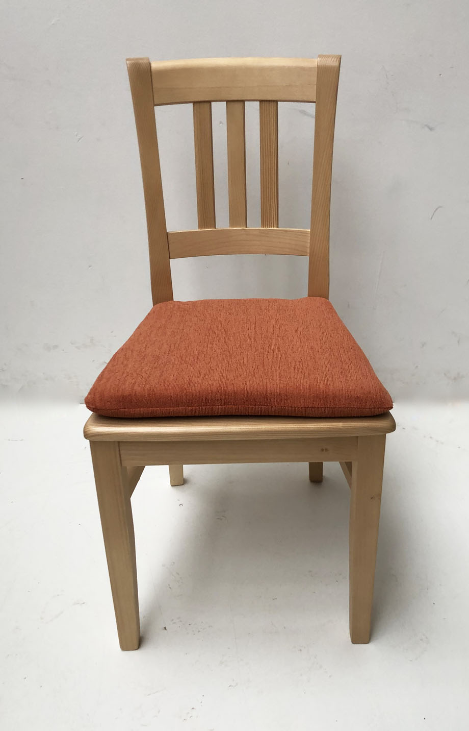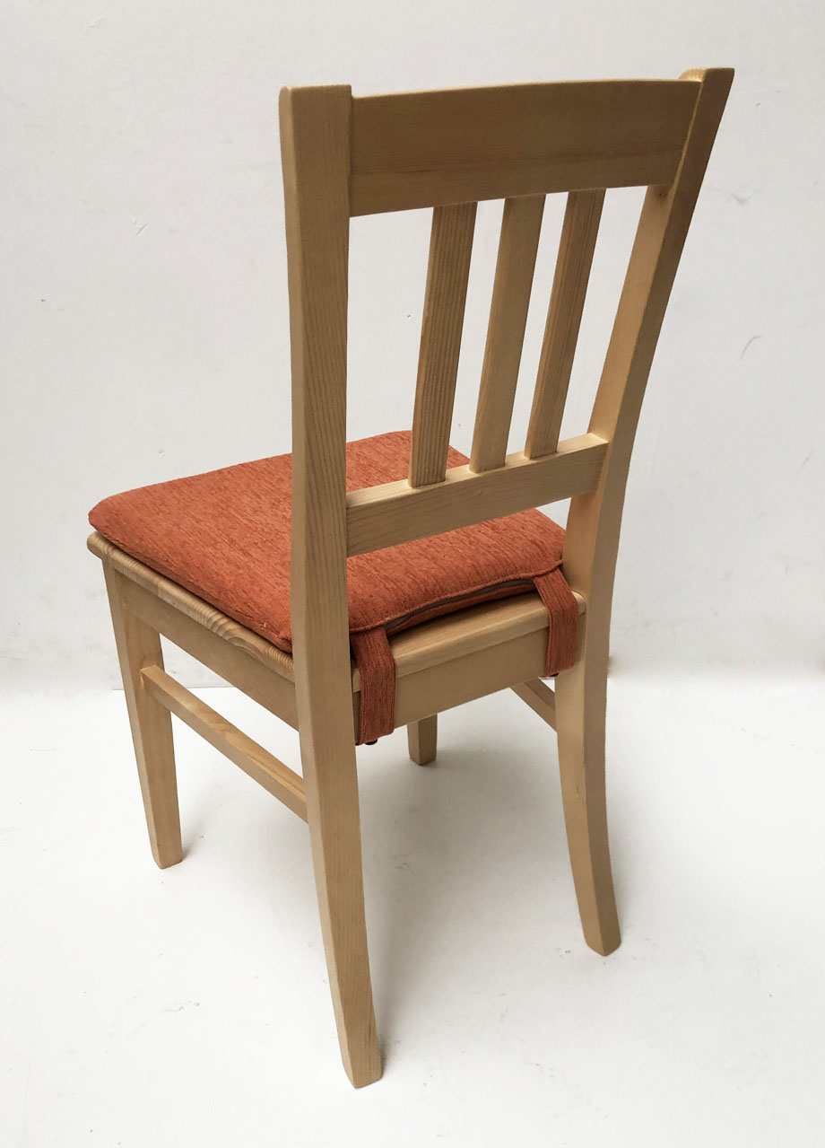 Sprossenstuhl 3863, Fichte , Rosner lackiert, Polster genäht. Pocking terra uni