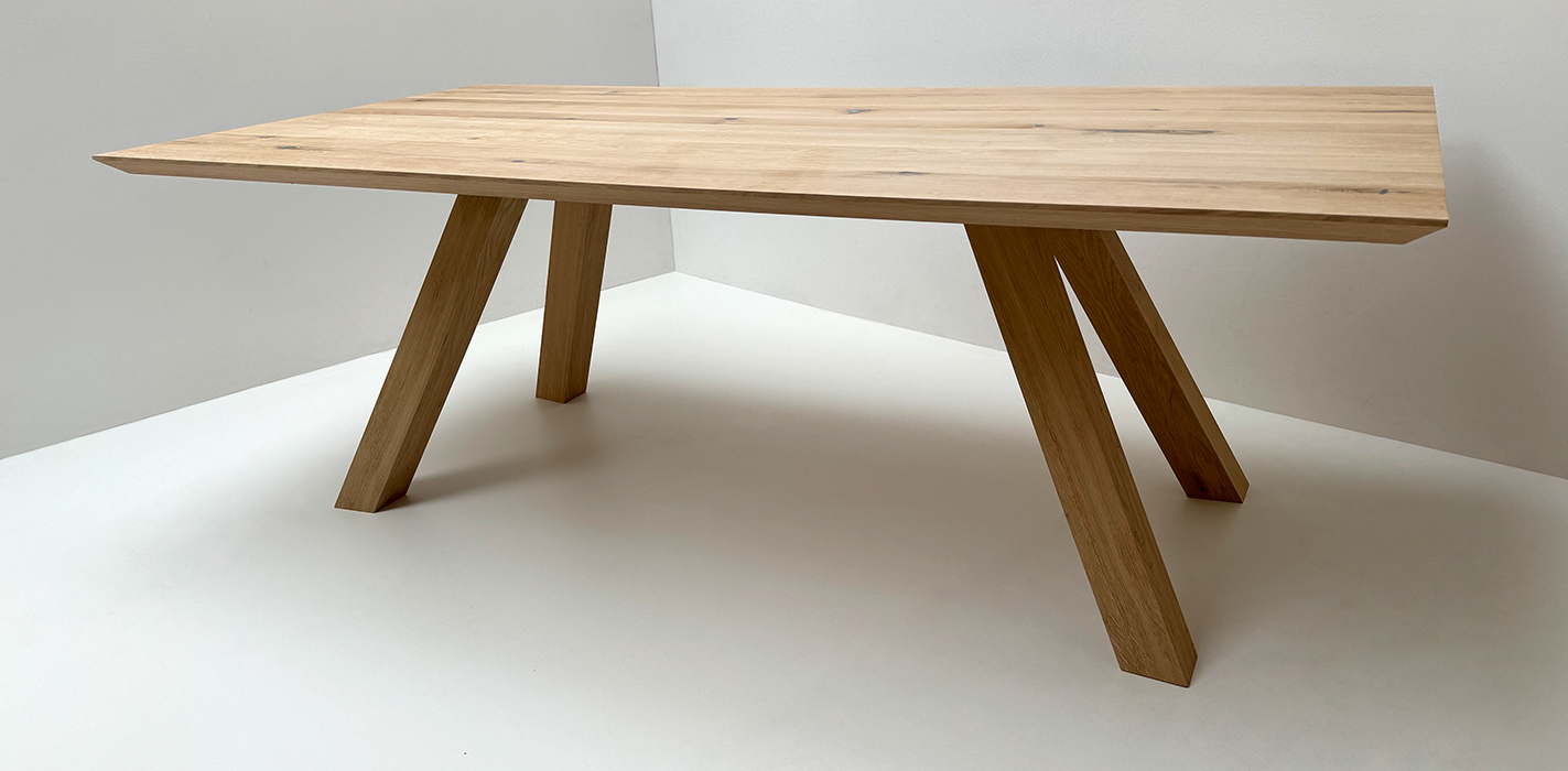 Tisch MERAN 220/110 cm, Schweizer Kante, Wildeiche roh