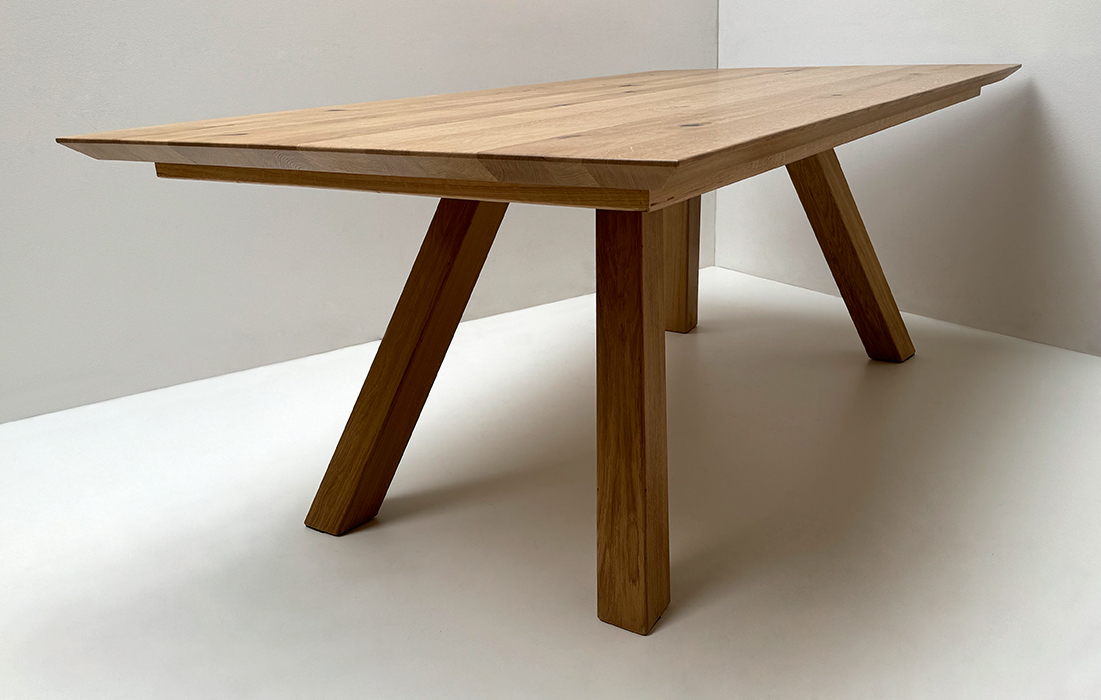 Tisch MERAN 180/110 cm, Schweizer Kante, mit Zargenrahmen, Wildeiche natur lackiert