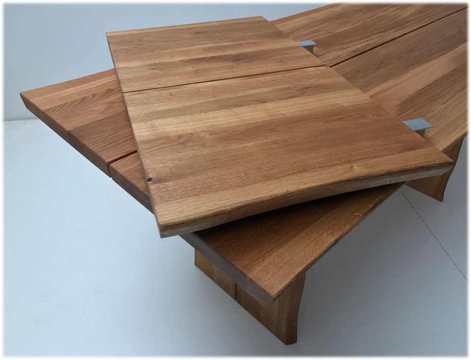 Baumtisch Tisch Oviedo 180/90 cm mit 2 Ansteckplatten 50 cm, Wildeiche geölt