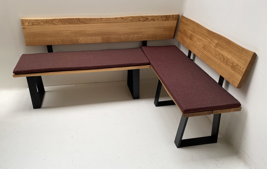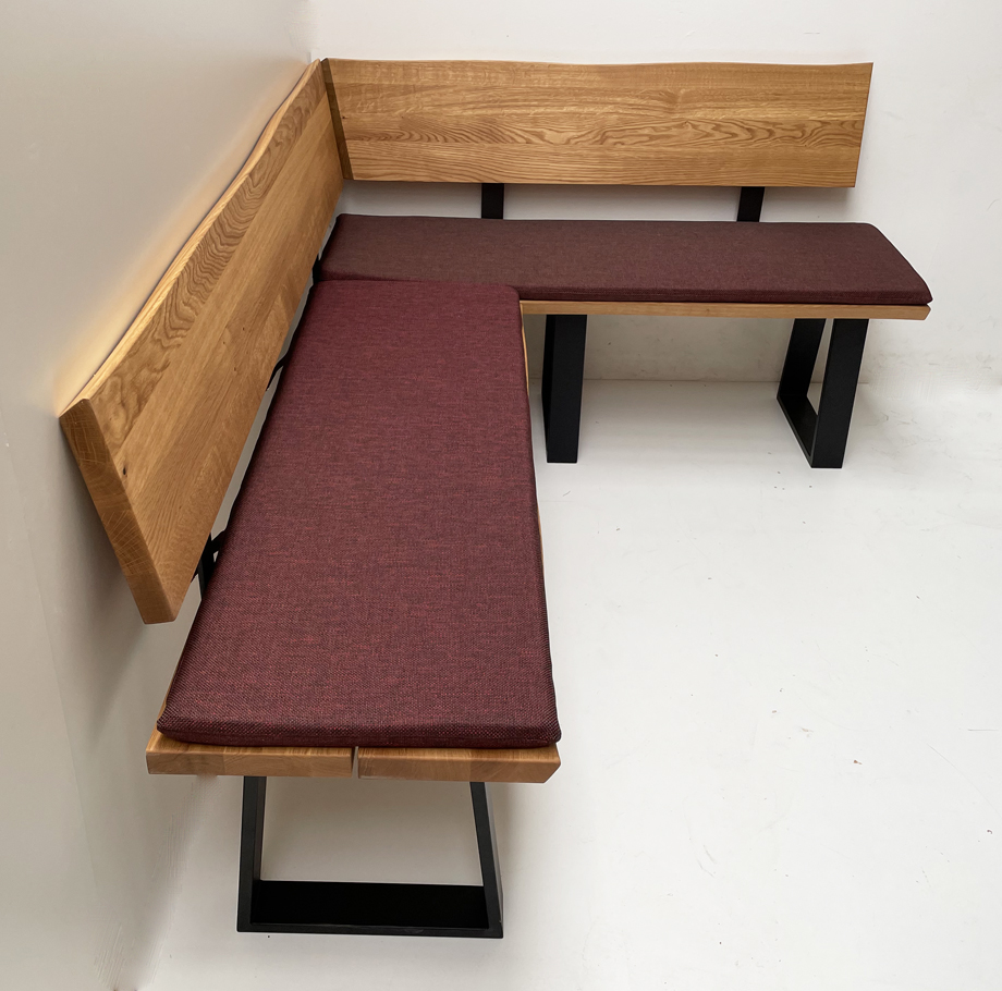 Eckbank Baumbank Oviedo 200/150 cm Wildeiche massiv geölt, Metallgestell, Polster genäht Verano 659