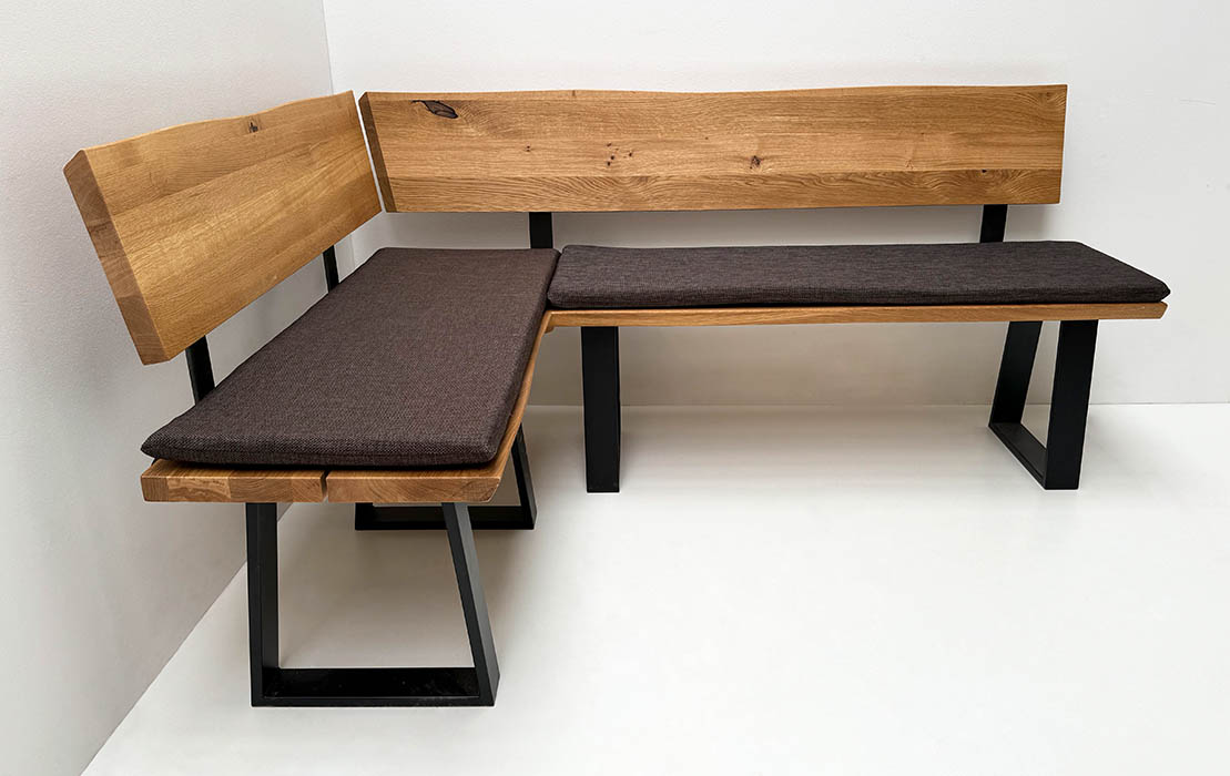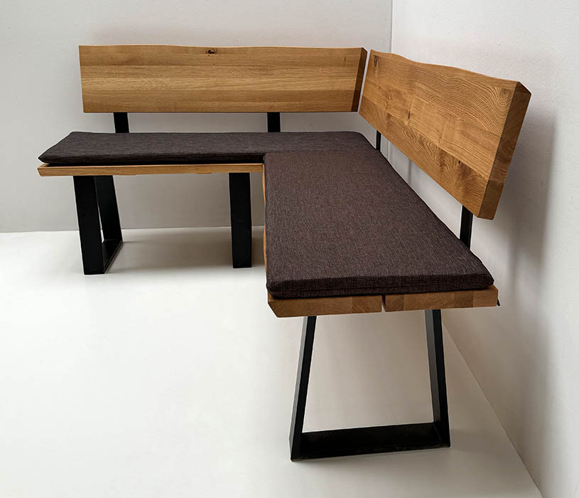 Eckbank Baumbank Oviedo 160/160 cm Wildeiche massiv geölt, Metallwangen schwarz