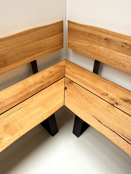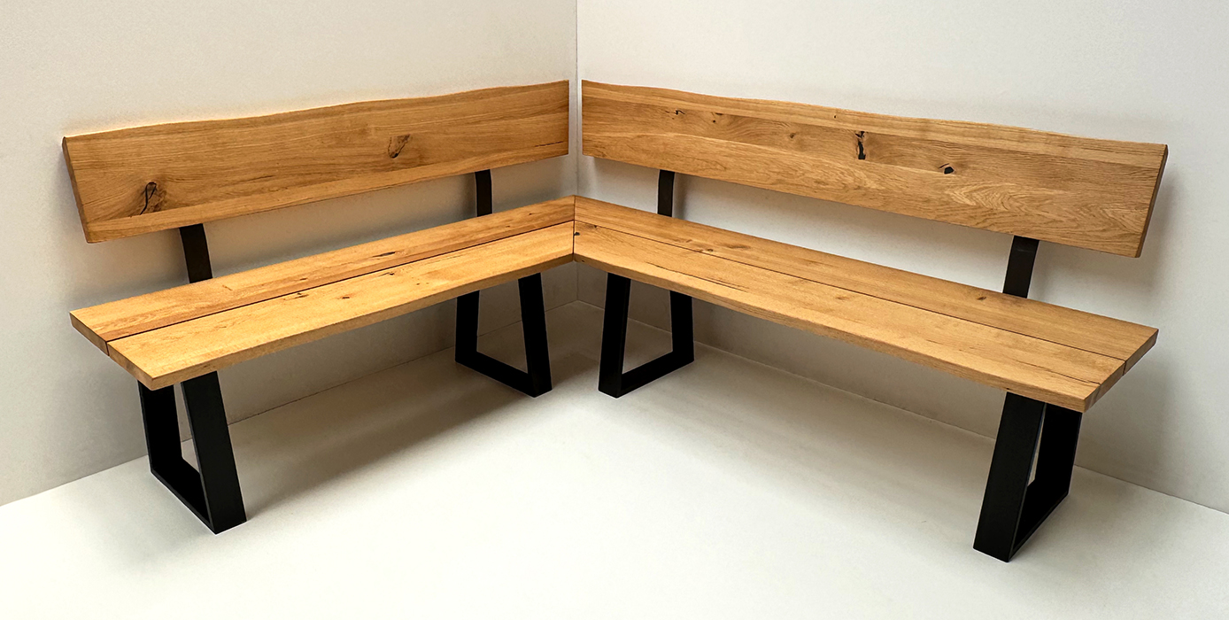 Eckbank Baumbank Oviedo Sondermaß 180/199 cm Wildeiche massiv geölt, Metallwangen schwarz