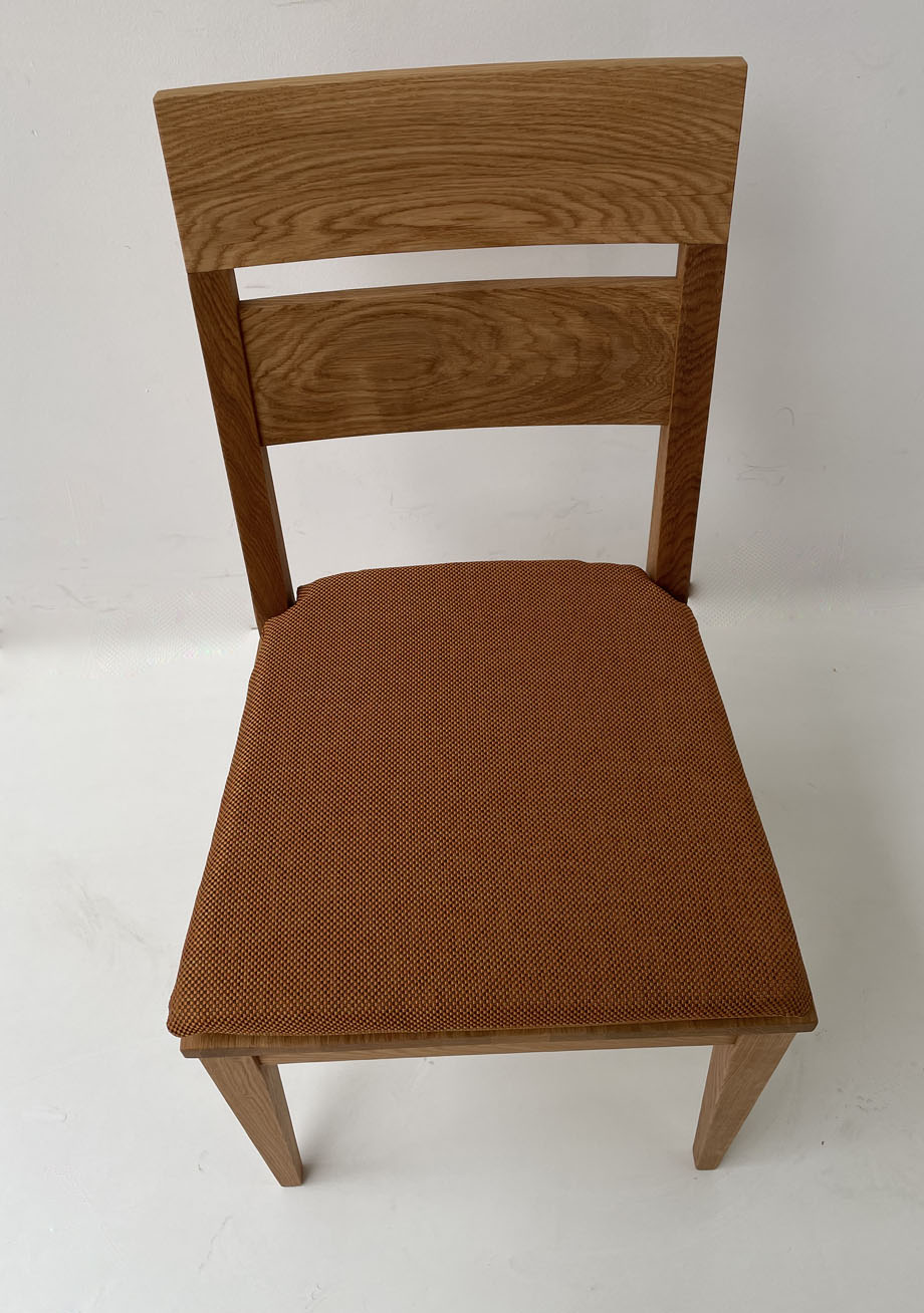 Stuhl Filippa-M, Massivholzstuhl Oviedo, Stuhlpolster genäht, Laschen , Druckknopf, VERANO 650 terra
