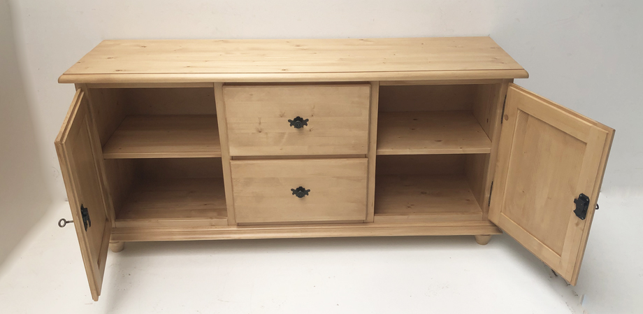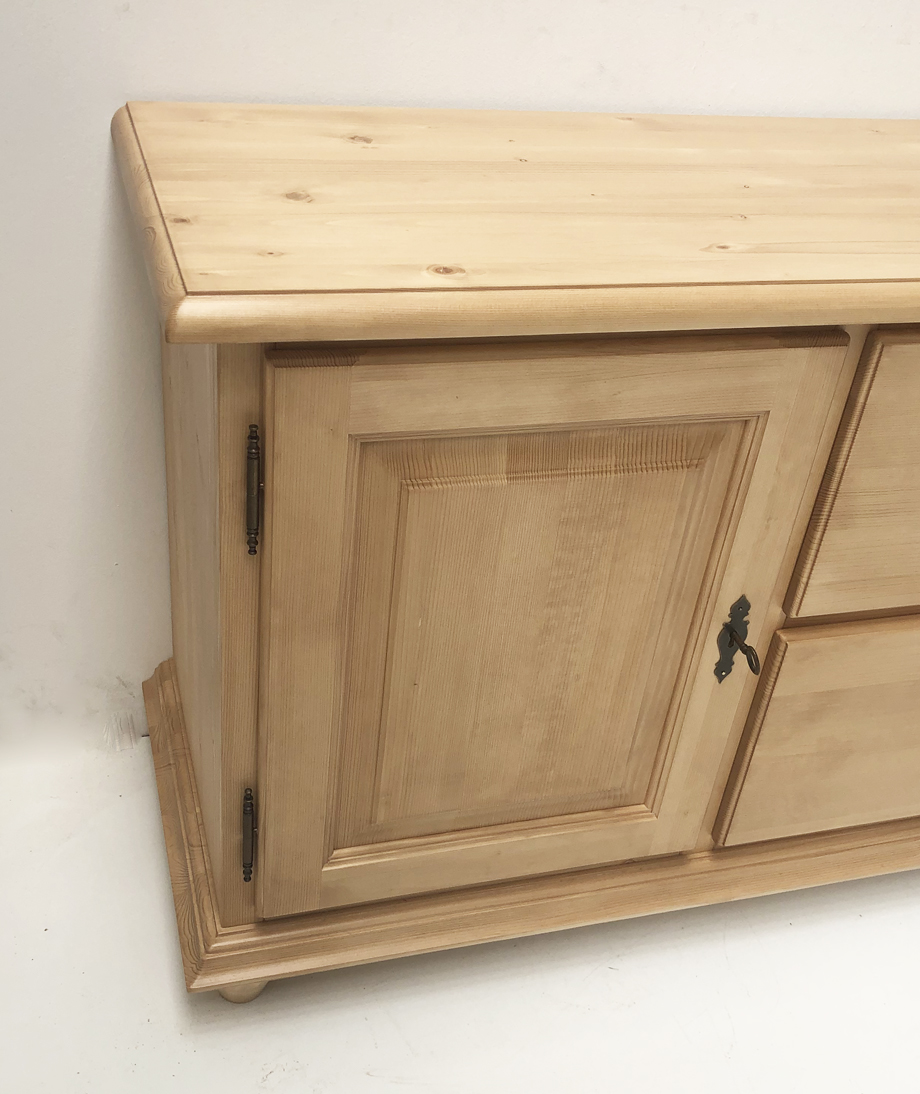 Abm. 160/75/45 cm, B/H/T mit Sockel, aussenliegende Scharniere , 2 Schubladen, Fichte massiv, Rosner Hartwachs,