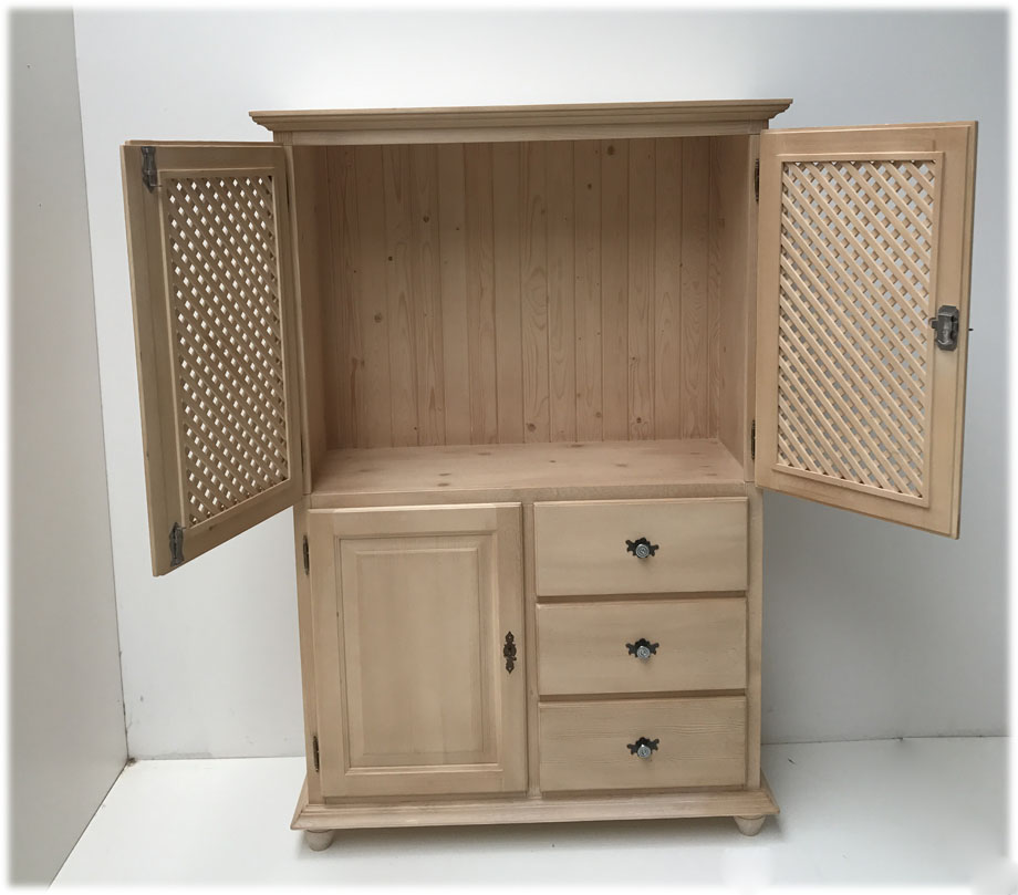Abm. 112/168/63 cm, B/H/T, Fichte massiv, Innenmaß für Fernseher: 84/68/53 cm, in Rosner gewachst