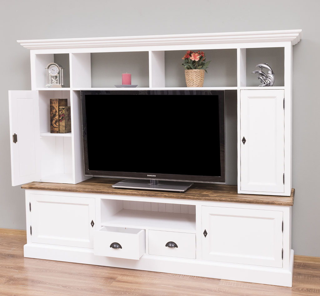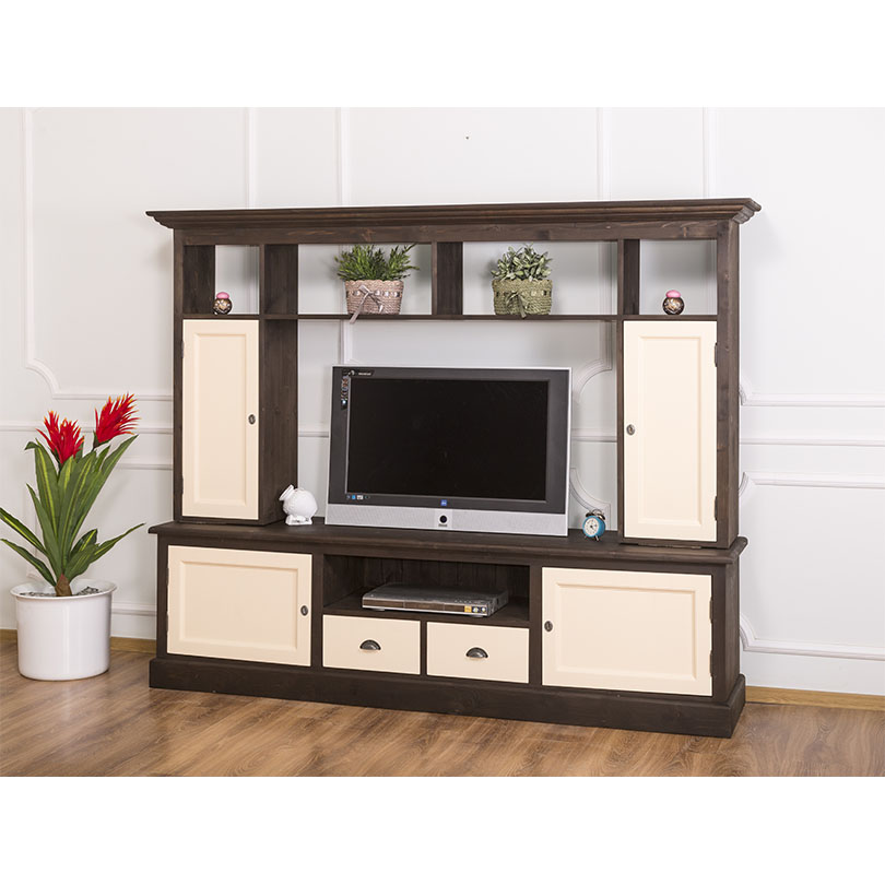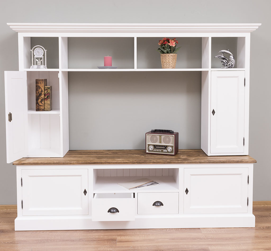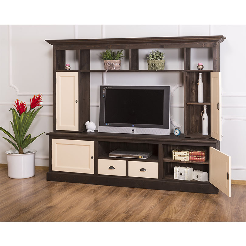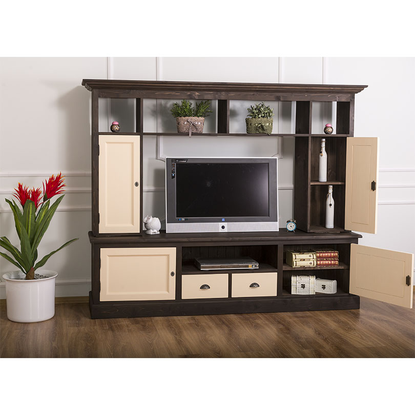 TV-Wohnwand, 4 Türen, 2 Schubladen, 6 Fächer, Kiefer massiv