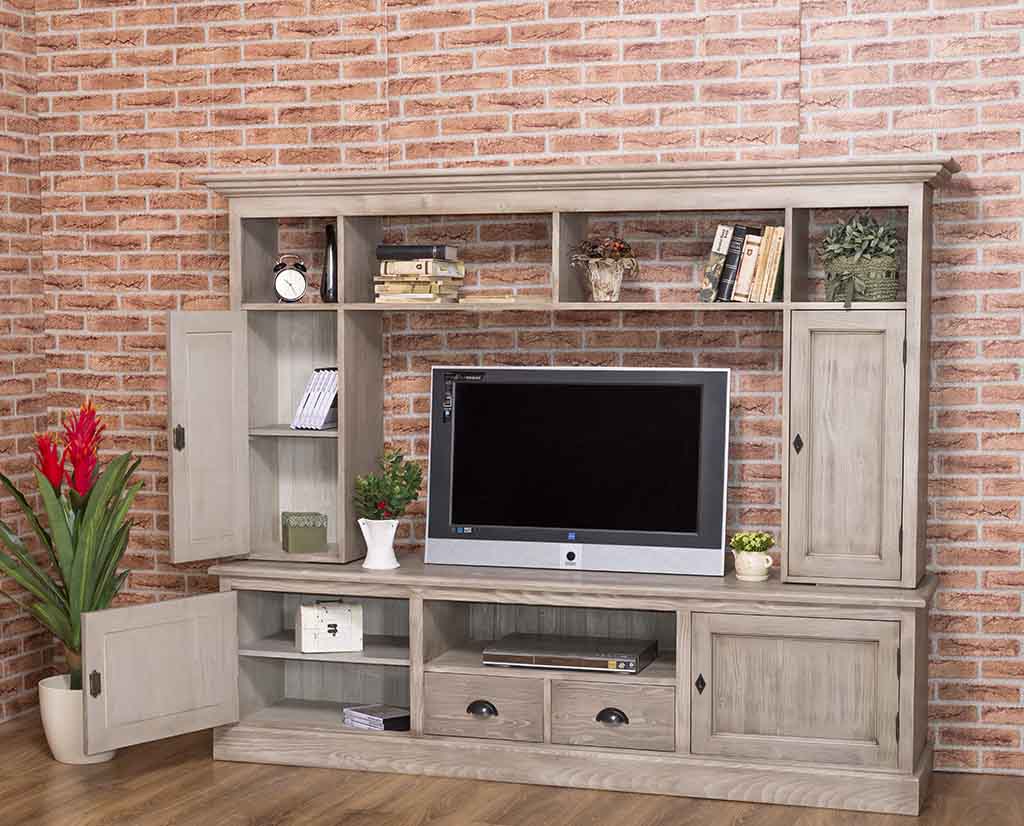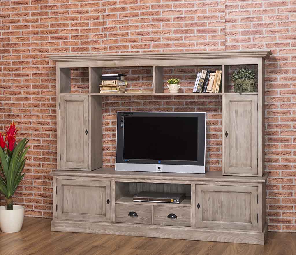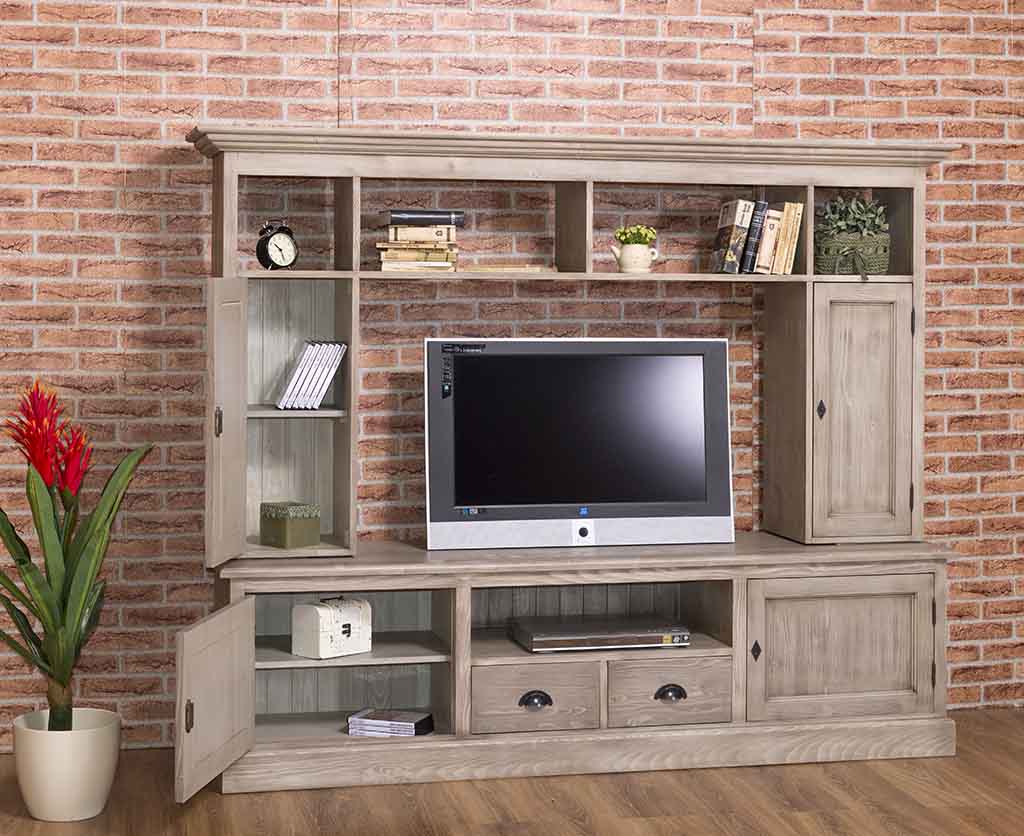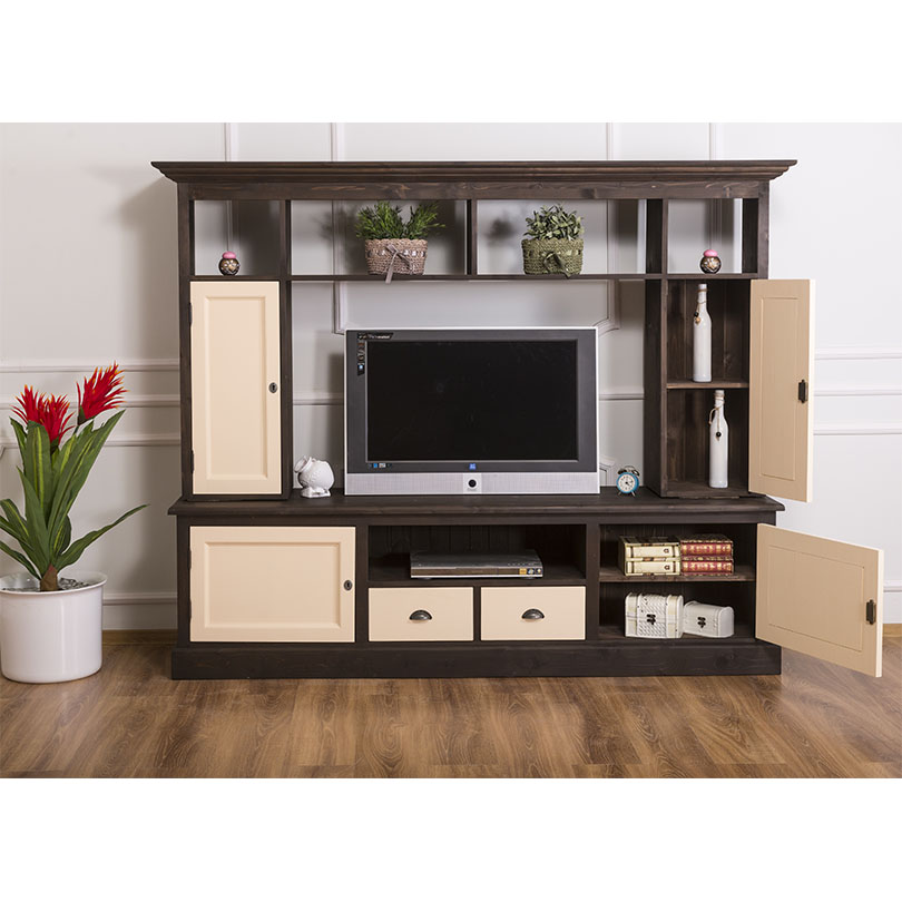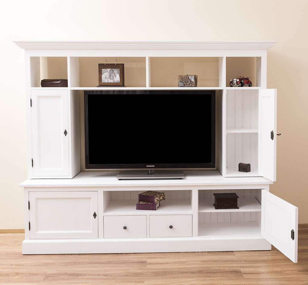 TV-Wohnwand, 4 Türen, 2 Schubladen, 6 Fächer, Kiefer massiv
