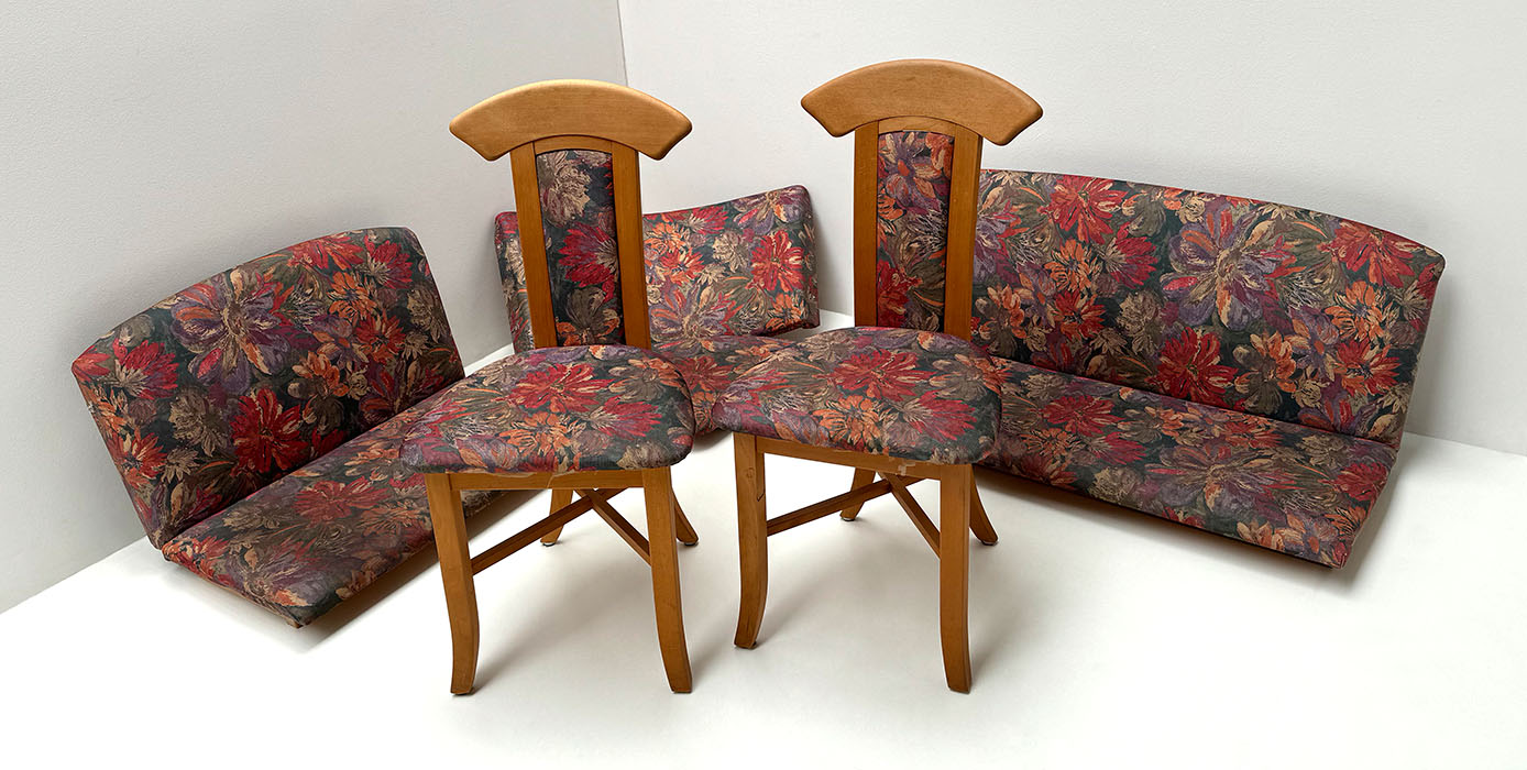 Polstersatz für Eckbanksitze,  (1 Sitz lang 120 cm, 1 Sitz kurz 80 cm, 1 Ecksitz nach Schablone, 1 Rücken lang 120 cm, 1 Rücken kurz 80 cm, 1 Eckrücken