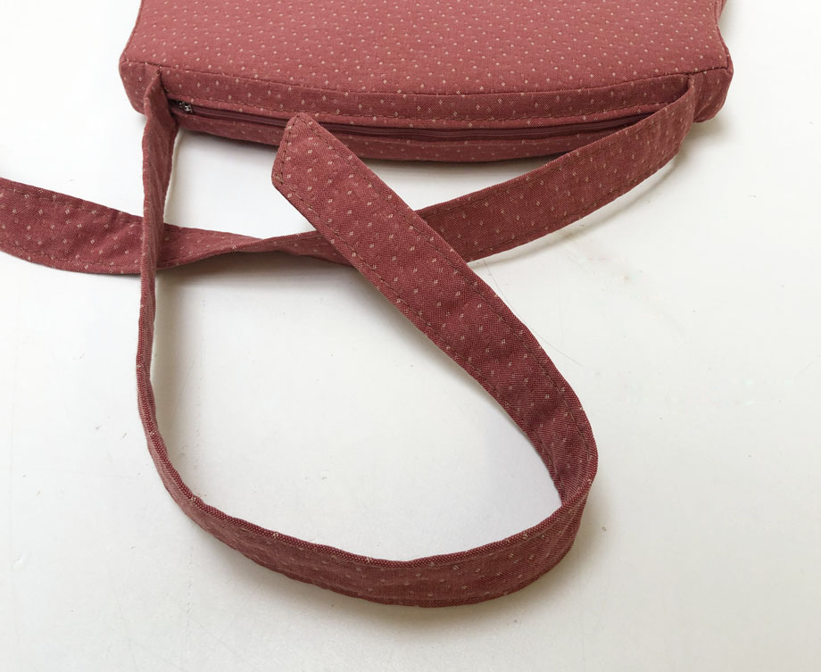 nach Kundenvorgabe Bild und zugesandter Papierschablone hergestelltes genähtes Kissen, mit Stegen und Bändern zum Anbinden.