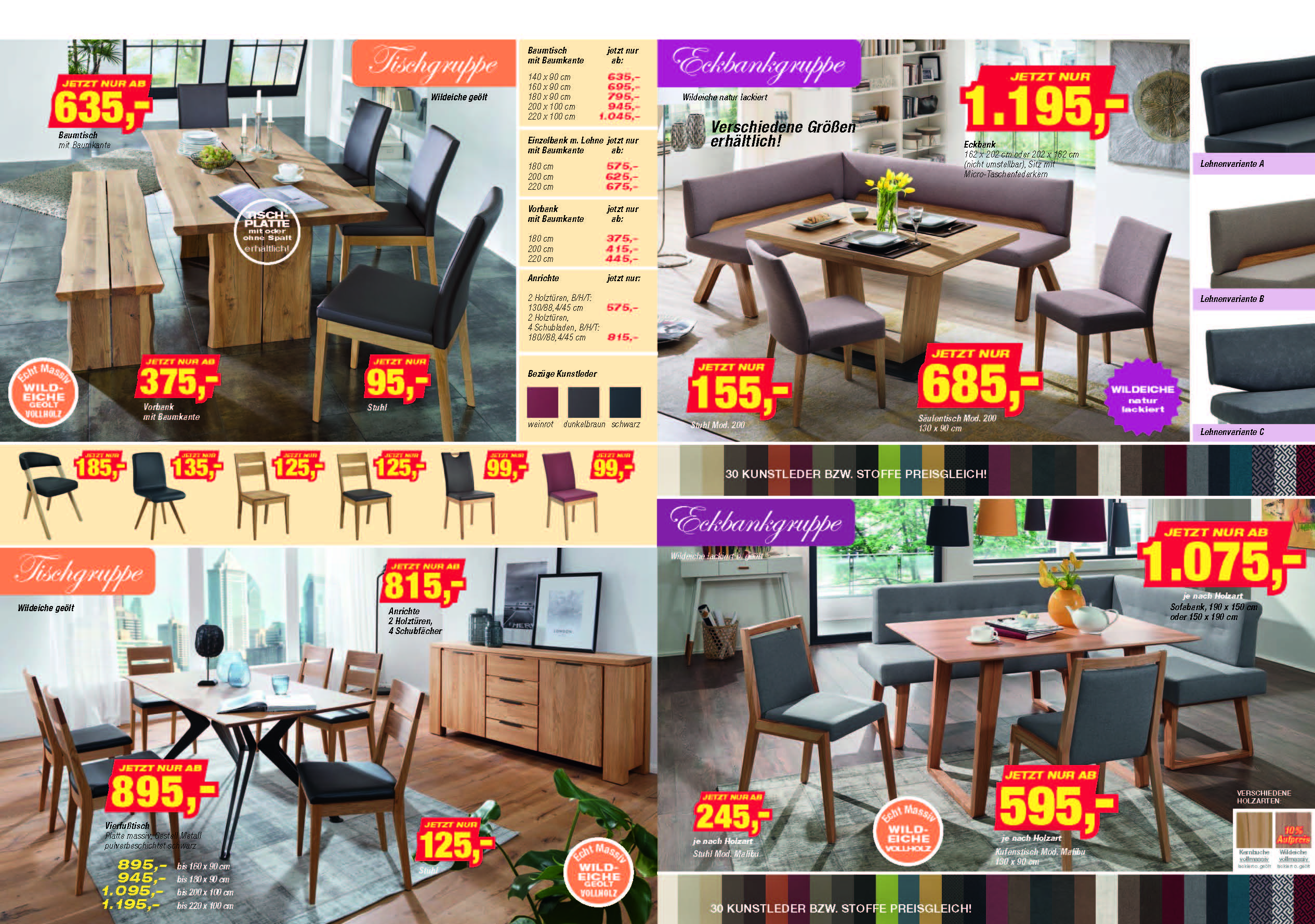 Der neue Prospekt Wohnen im Landhaus Stil 1-2019 ist druckfrisch erschienen. Interessante Angebote zum Esszimmerprogramm Oviedo , Baumtisch und Baumkantenbank in Verbindung mit Metallkufen, Wildeiche Möbelprogramme mit Leder-, Kunstlederstühlen,