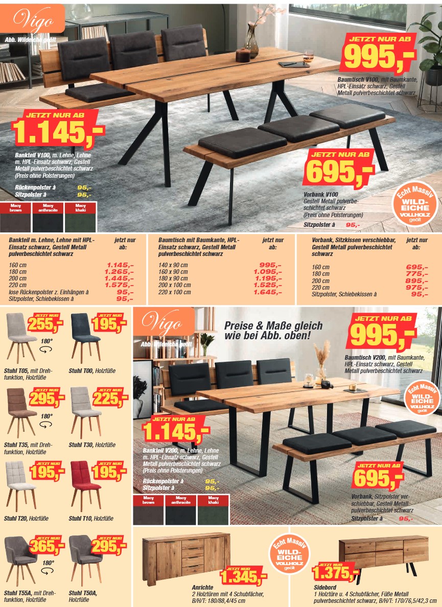 Esszimmerprogramm VIGO mit Vierfußtisch Wildeiche,
