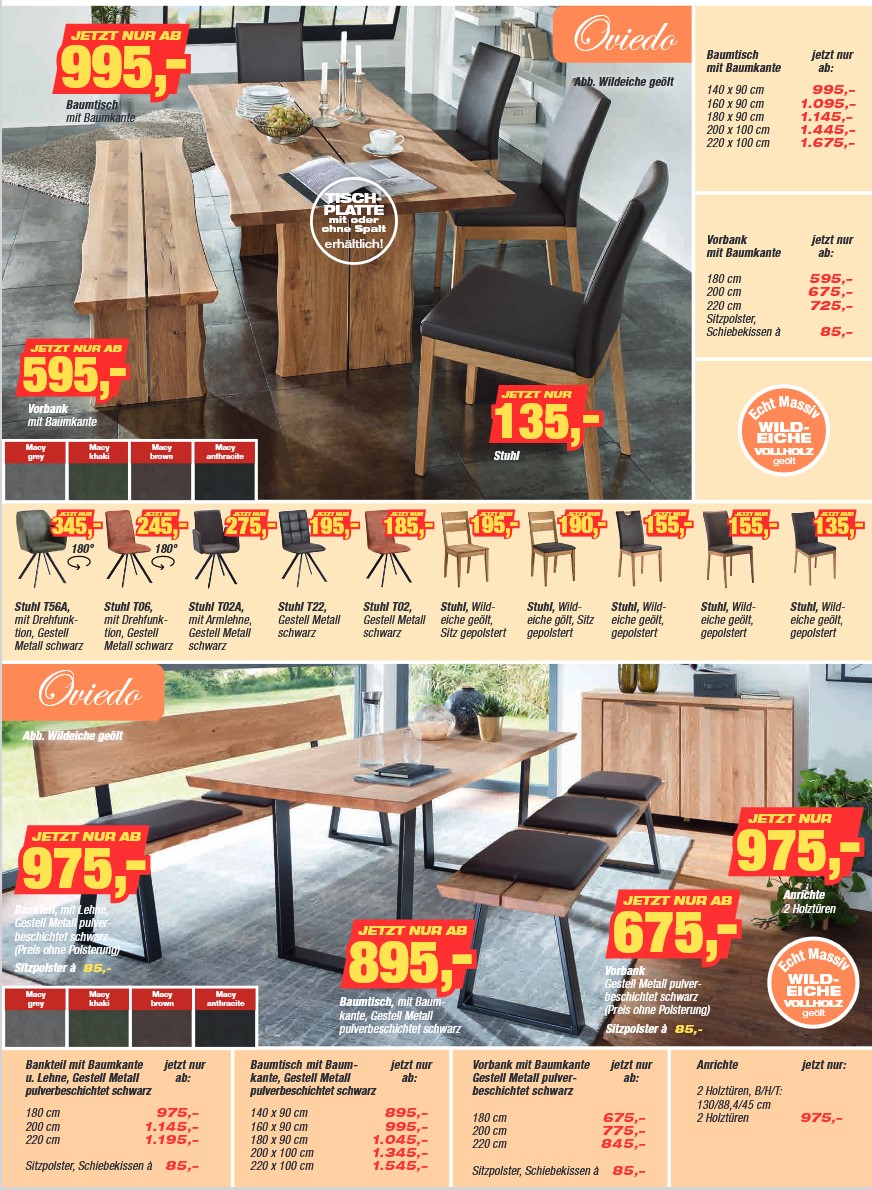 Interessante Angebote zum Esszimmerprogramm OVIEDO, Eckbank Oviedo Baumtisch mit Metallkufen und Baumkantenbank,