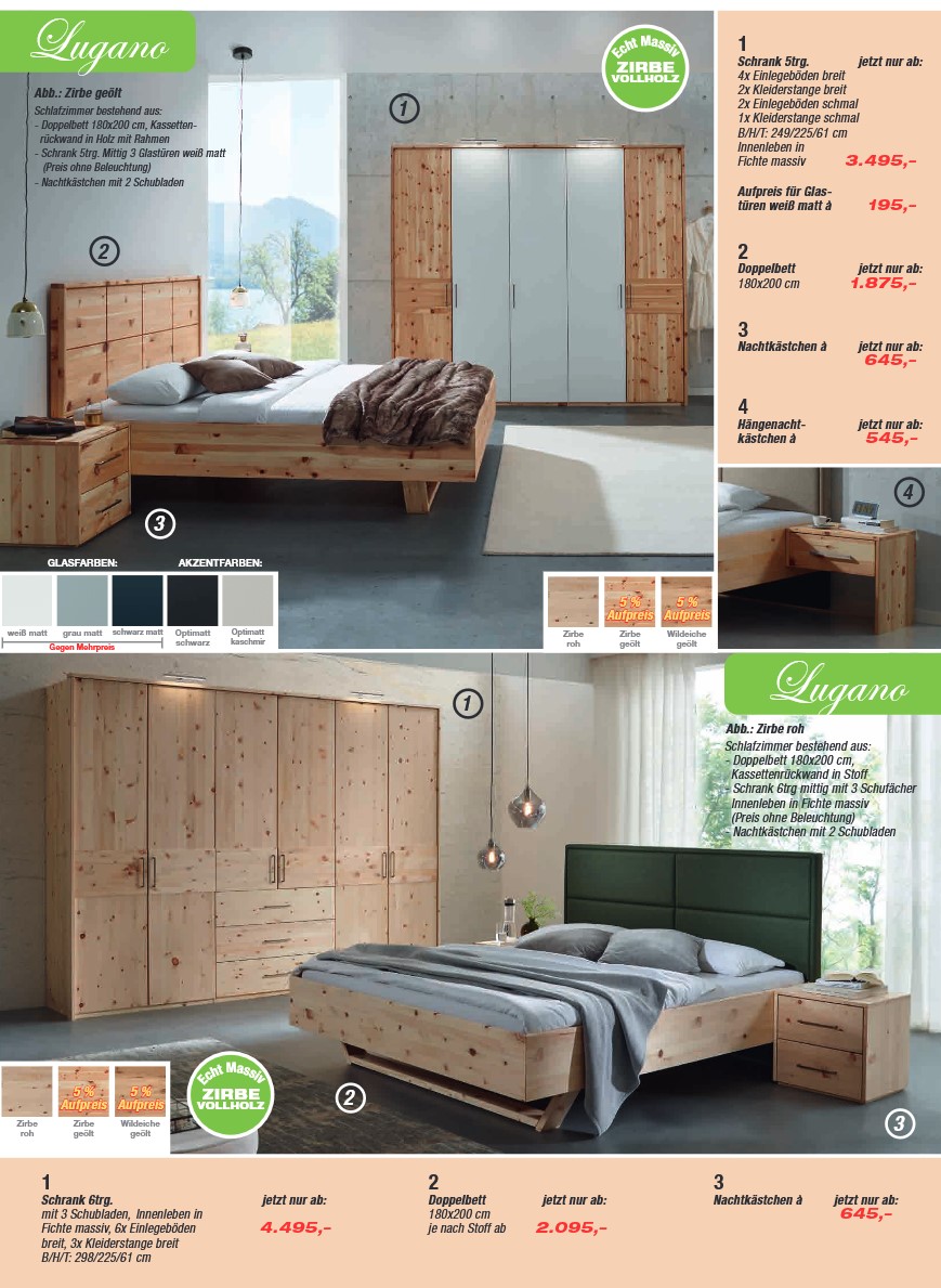 Schlafzimmerprogramm LUGANO in Zirbe geölt
