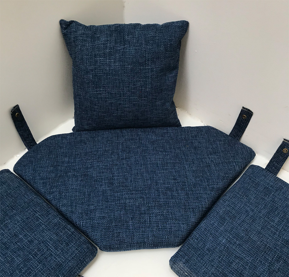 Kissensatz genäht Eckbankgruppe Provence 145/185 cm, Ausführung genäht mit Laschen, Natura blau 812
